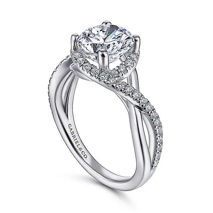 Gabriel & Co. ER9339W44JJ 14K White Gold Round Twisted Diamond Engagement Ring