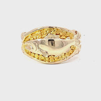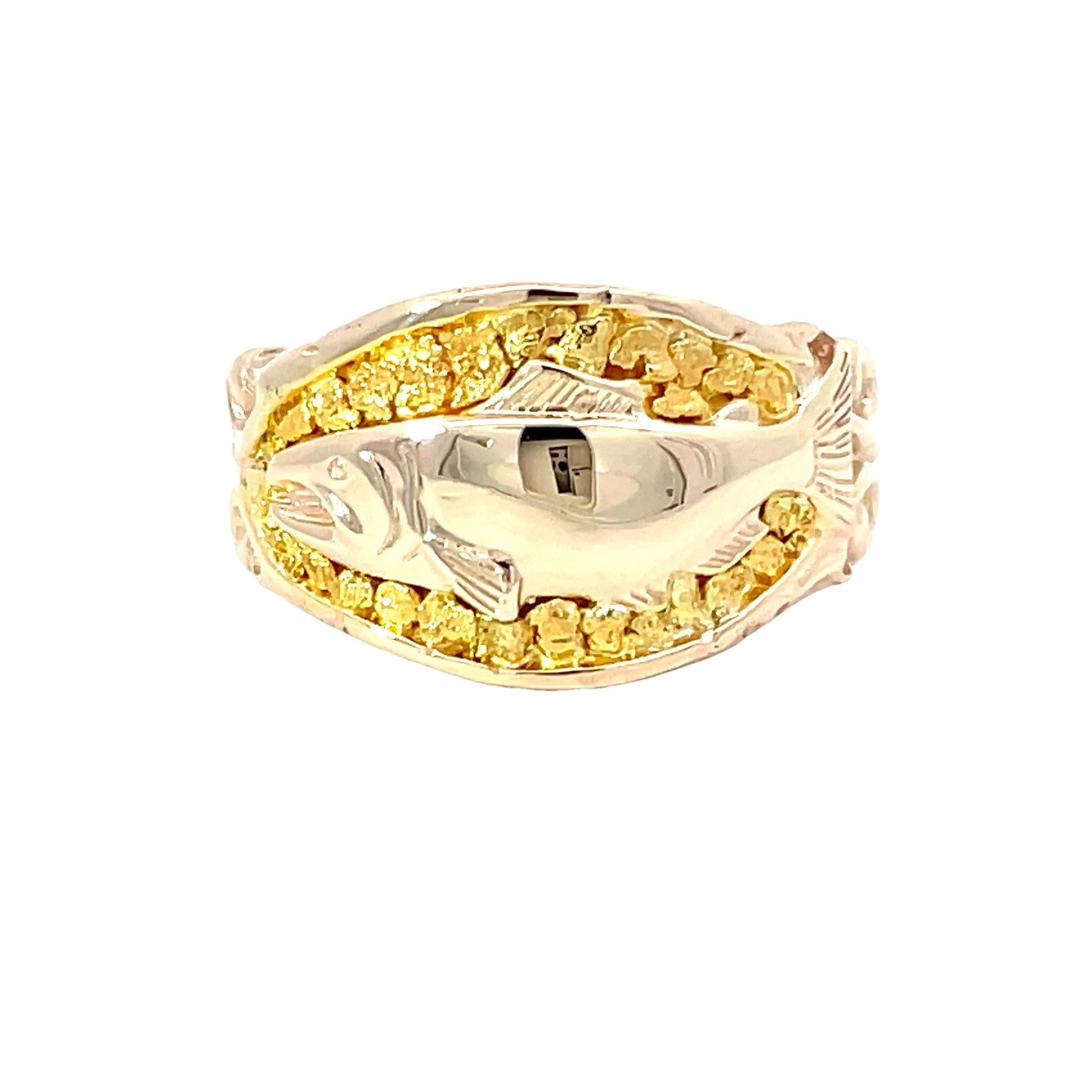 This exquisite ring features a stunning fish design, intricately crafted in high-quality metal. The shimmering golden accents provide an elegant touch, making it perfect for both everyday wear and special occasions.