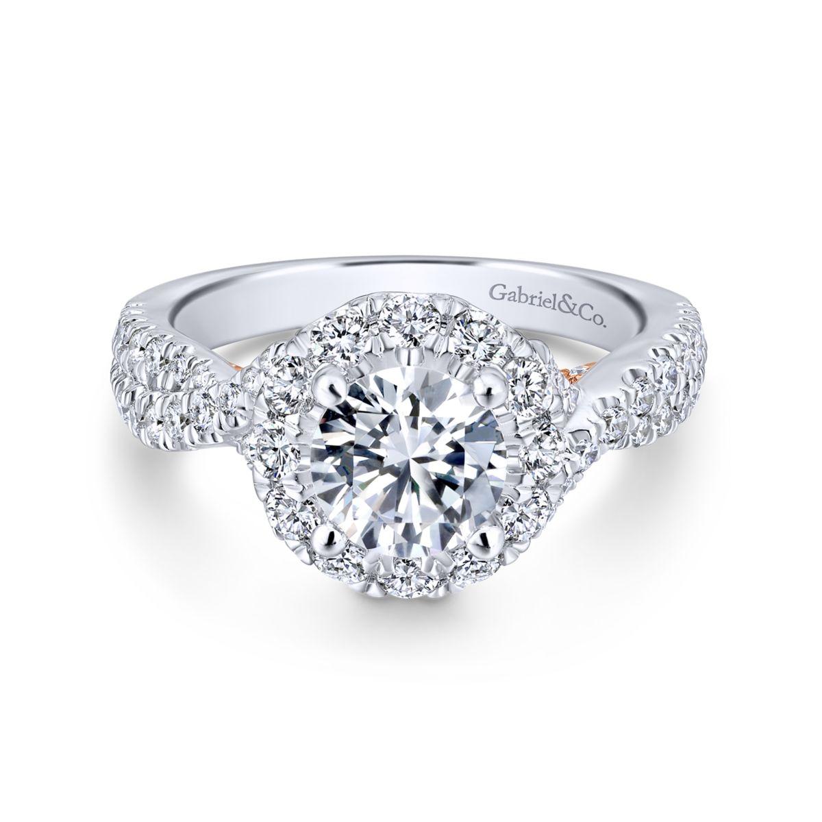 Gabriel & Co. 14k Two Tone Gold Blush Halo Engagement Ring