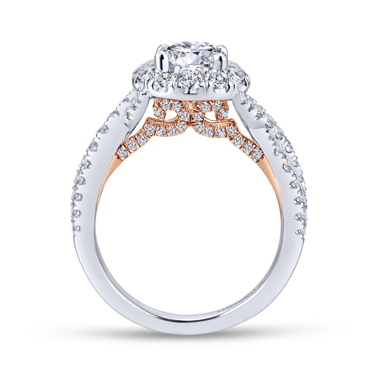 HOME / Gabriel & Co. 14k Two Tone Gold Blush Halo Engagement Ring