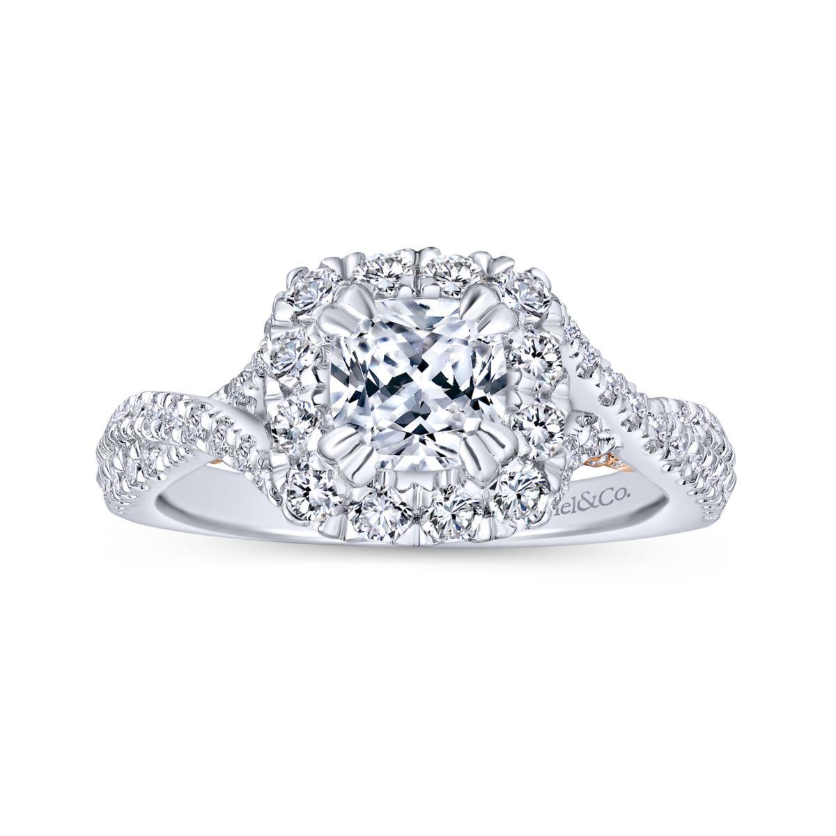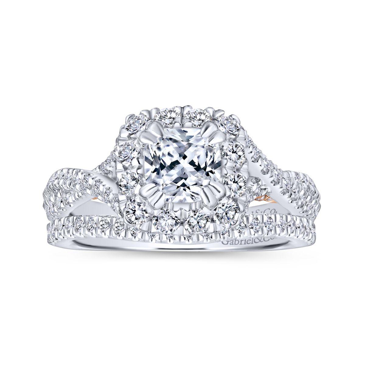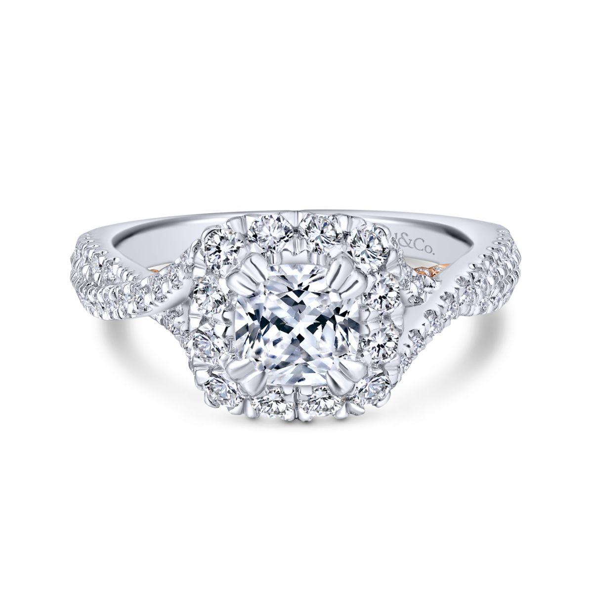 Gabriel & Co. 14k Two Tone Gold Blush Halo Engagement Ring