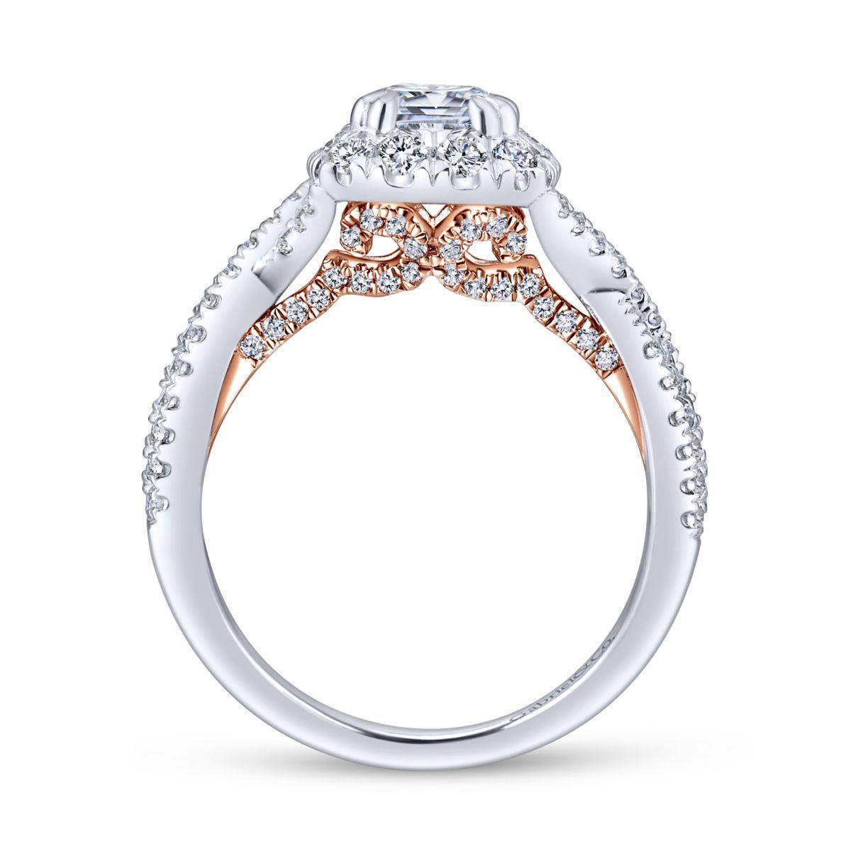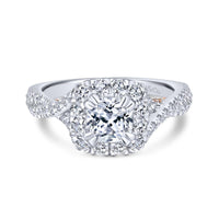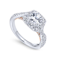 HOME / Gabriel & Co. 14k Two Tone Gold Blush Halo Engagement Ring