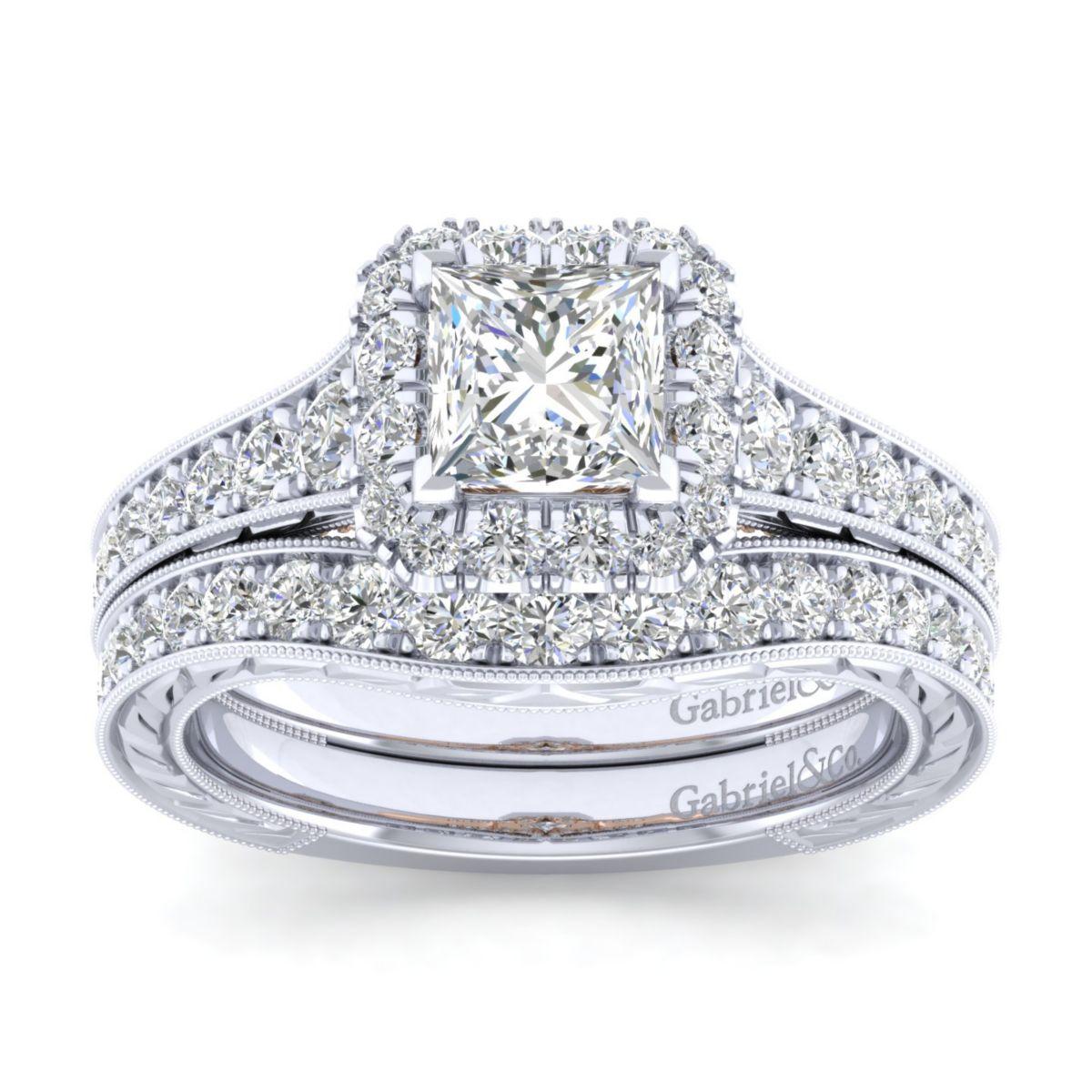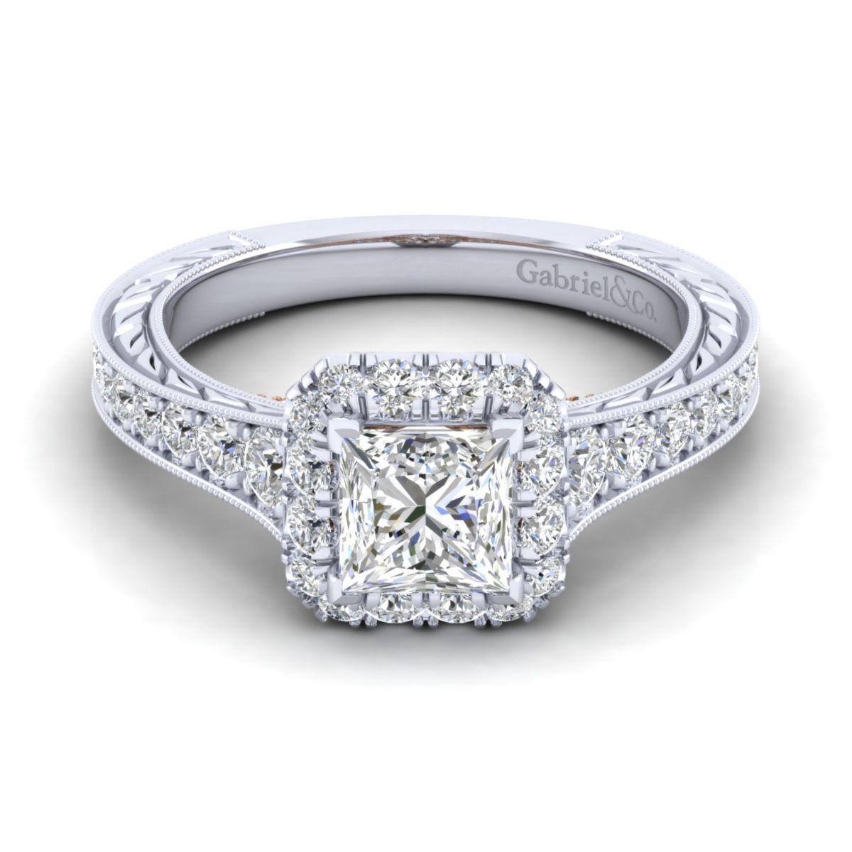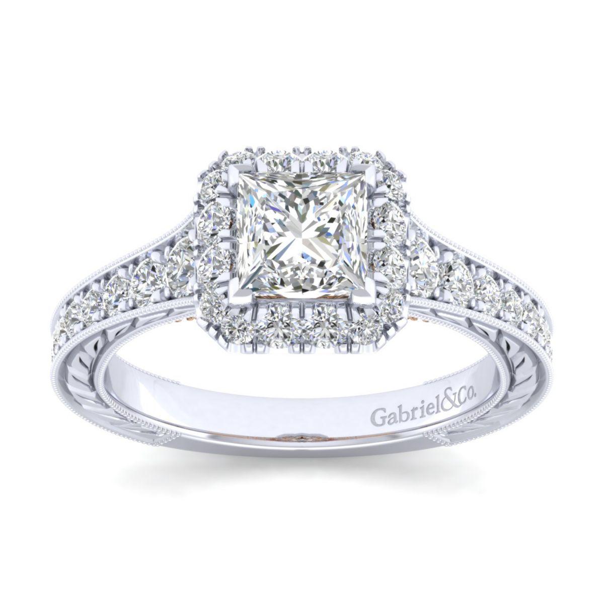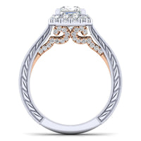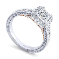 HOME / Gabriel & Co. 14k Two Tone Gold Blush Halo Engagement Ring