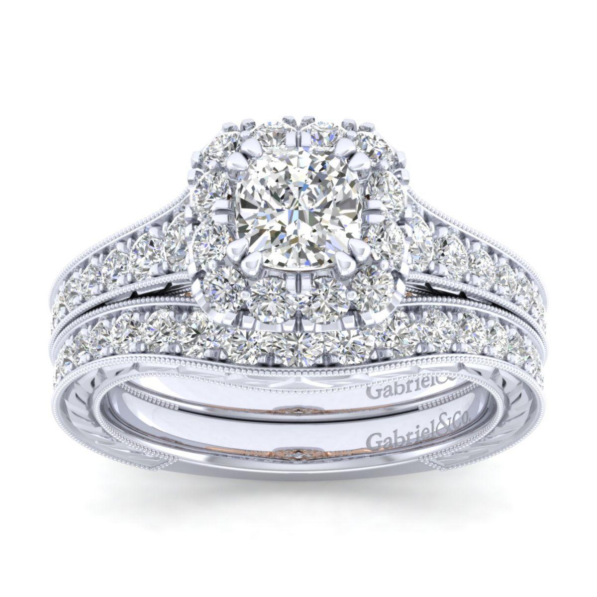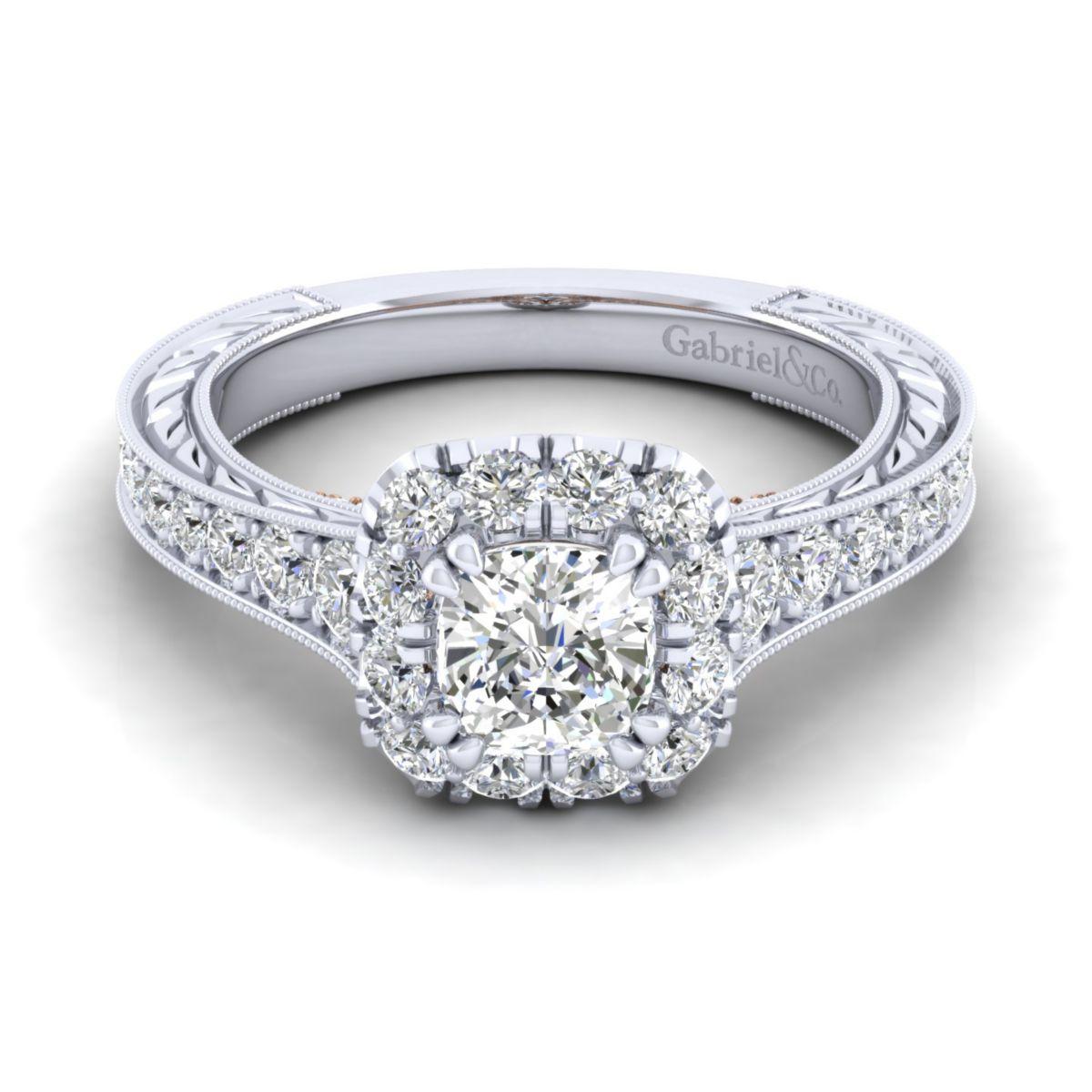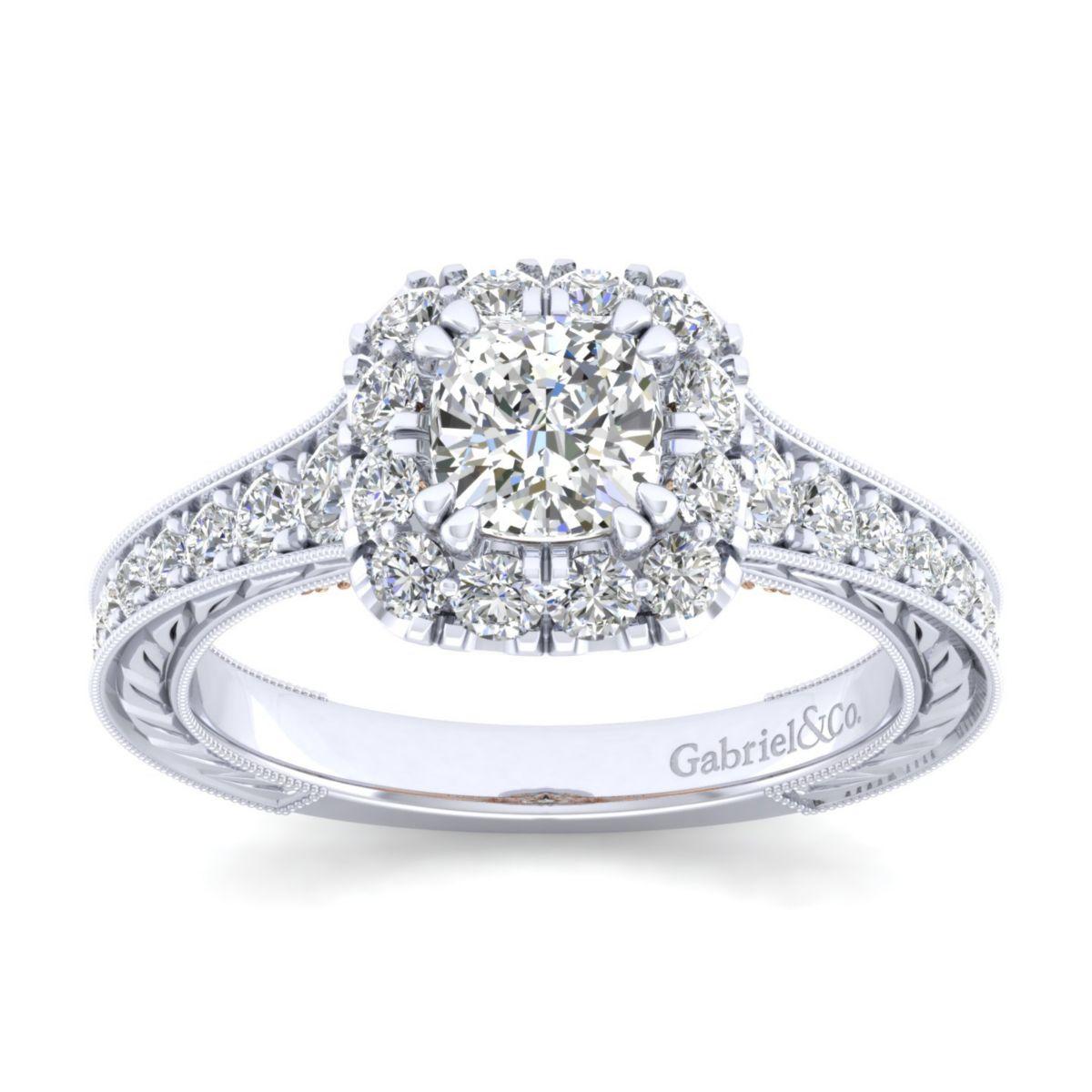 Gabriel & Co. 14k Two Tone Gold Blush Halo Engagement Ring