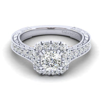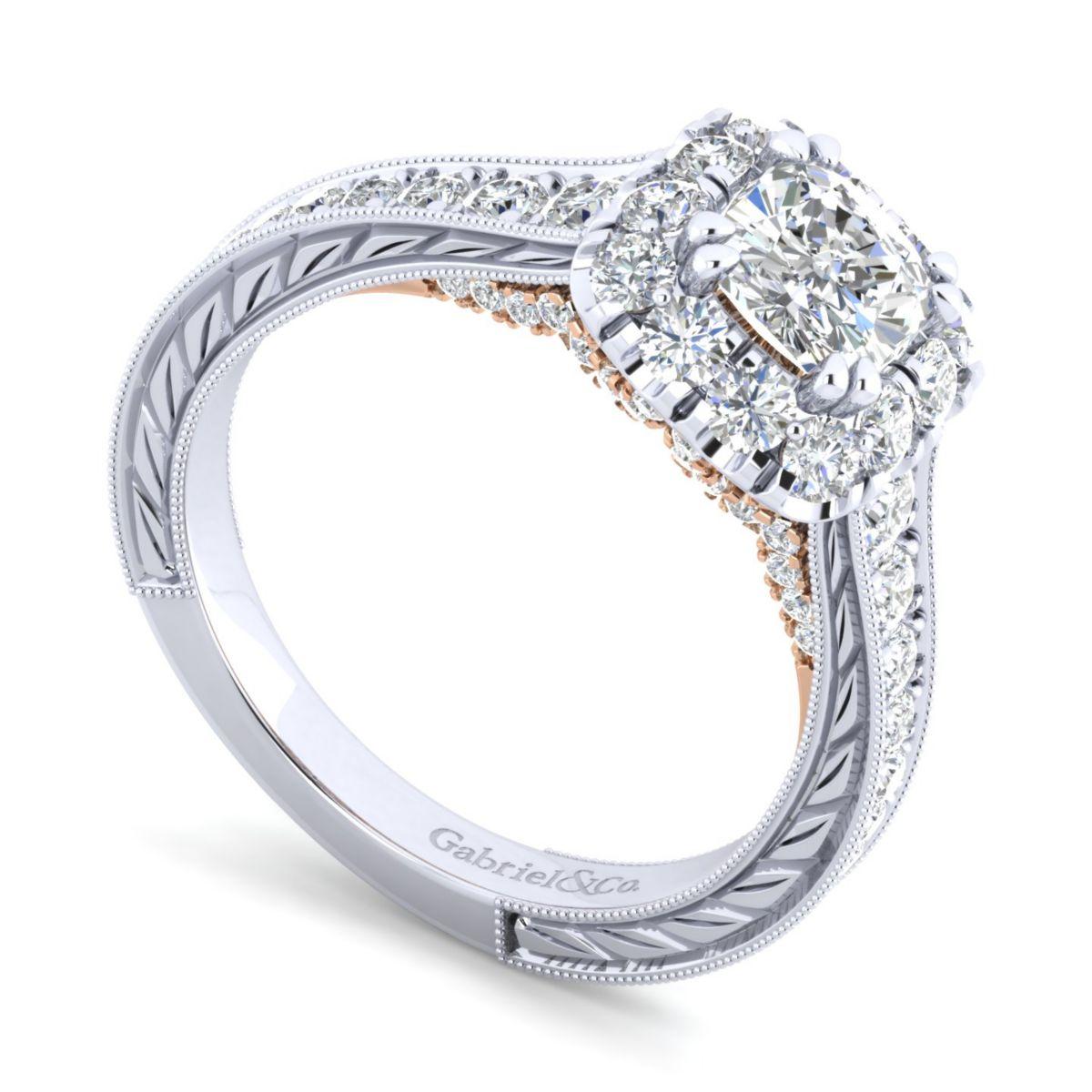 HOME / Gabriel & Co. 14k Two Tone Gold Blush Halo Engagement Ring