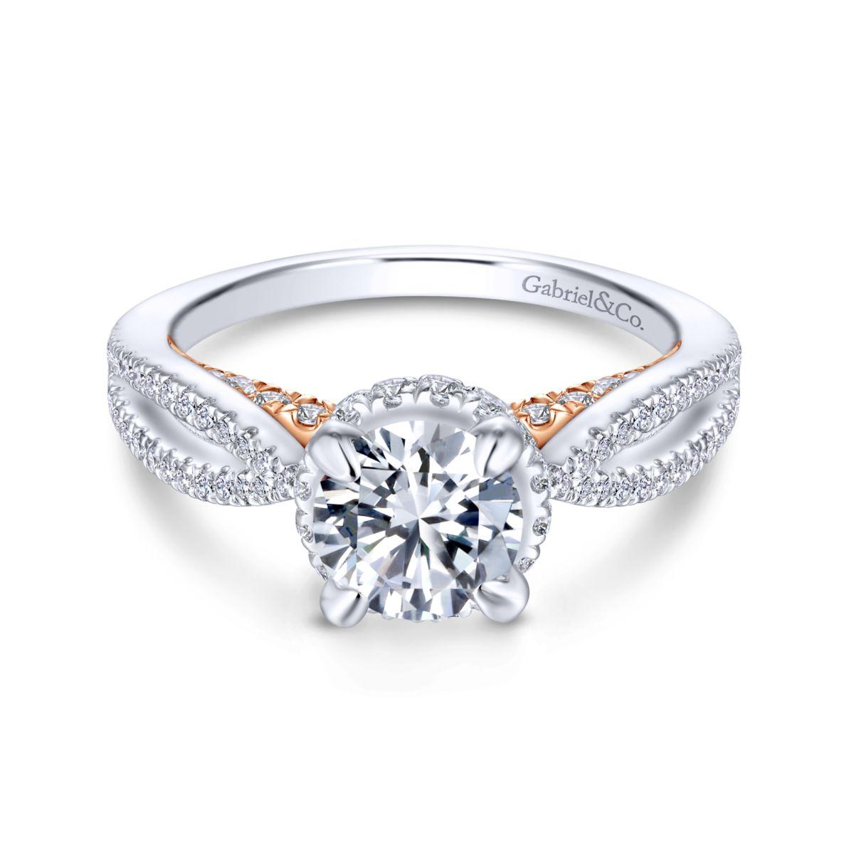HOME / Gabriel & Co. 14k Two Tone Gold Crown Split Shank Engagement Ring