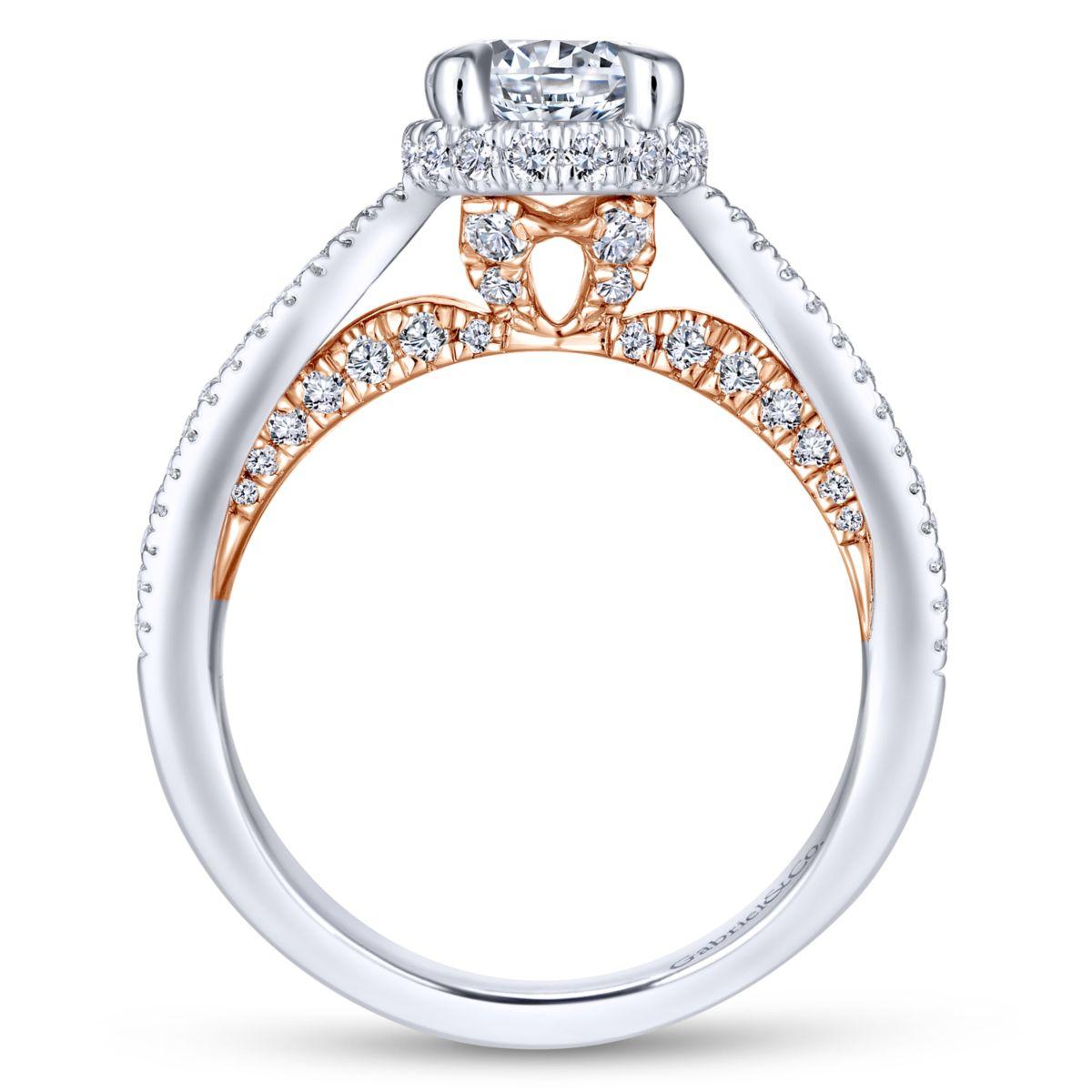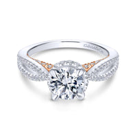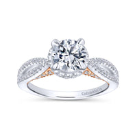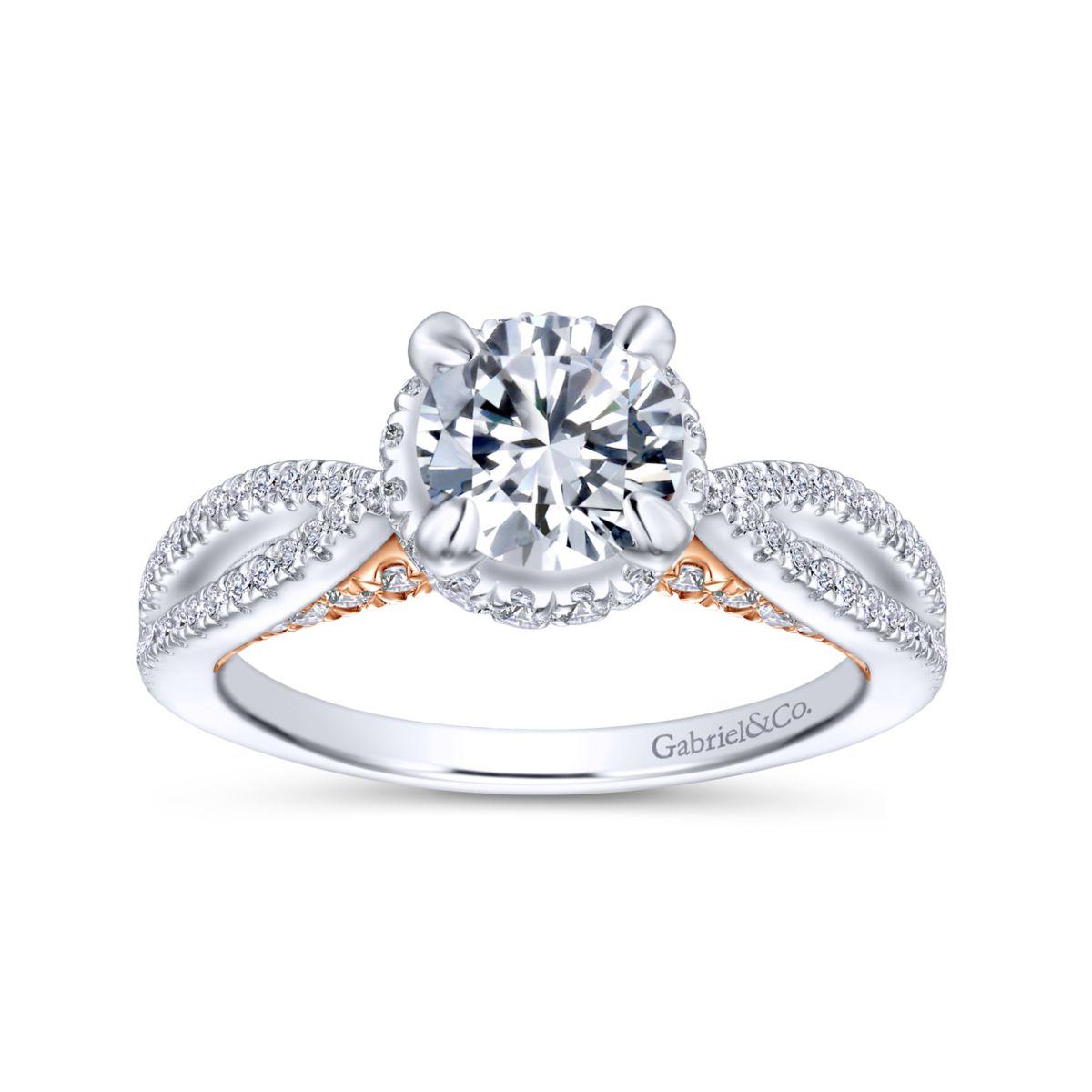 Gabriel & Co. 14k Two Tone Gold Crown Split Shank Engagement Ring