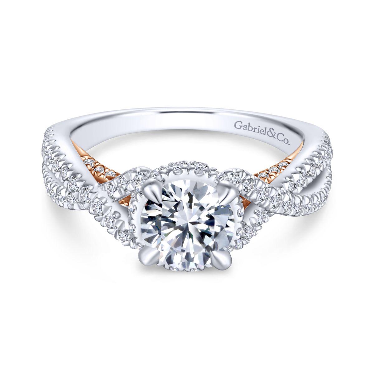HOME / Gabriel & Co. 14k Two Tone Gold Crown Twisted Engagement Ring