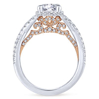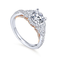 Elegantly intertwining white and rose gold, the Gabriel & Co. 14k Two Tone Gold Infinity Twisted Engagement Ring exudes timeless sophistication. With a total carat weight of 0.81, this exquisite setting awaits the perfect center stone to complete its enchanting allure.