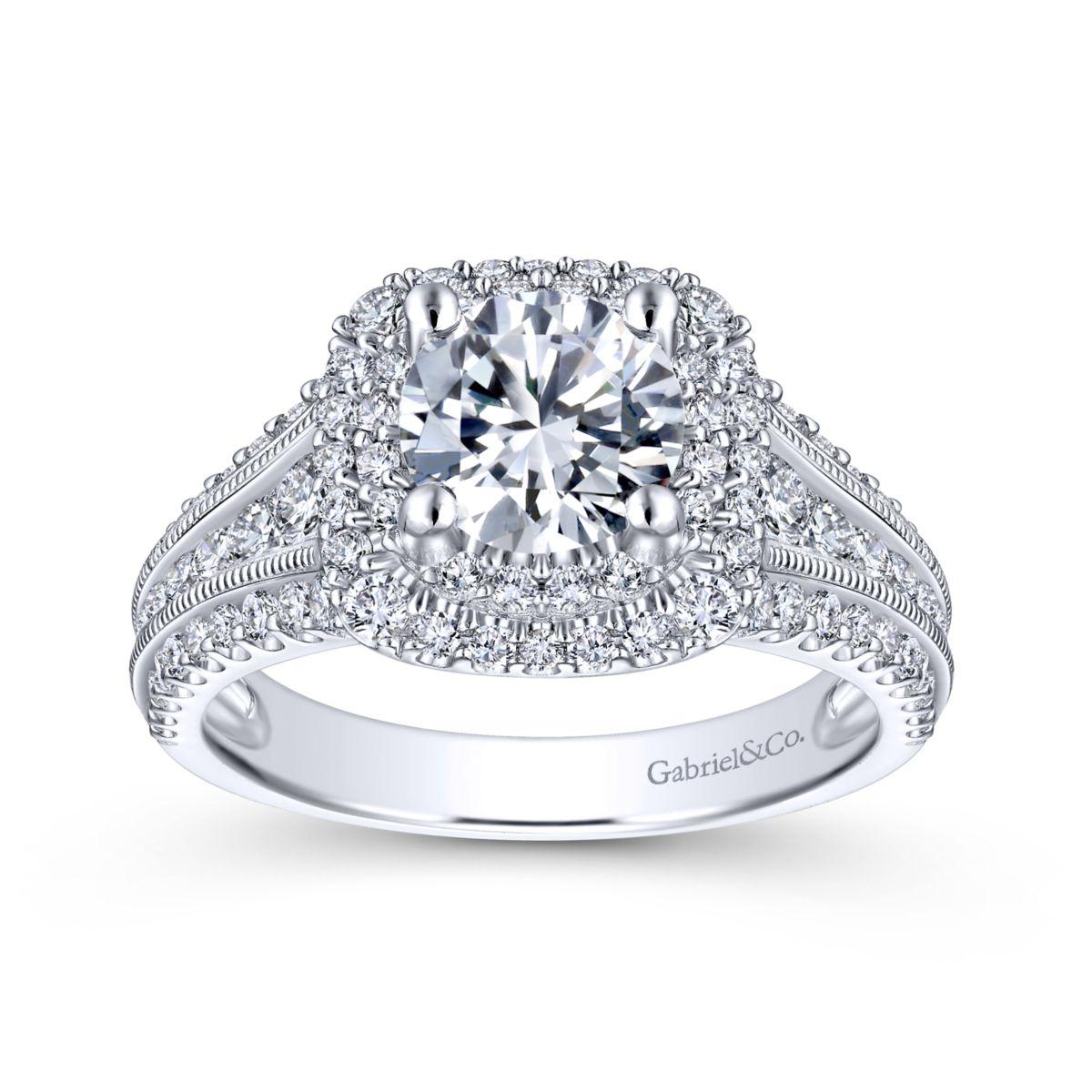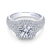 Gabriel & Co. 14k White Gold Contemporary Double Halo Engagement Ring