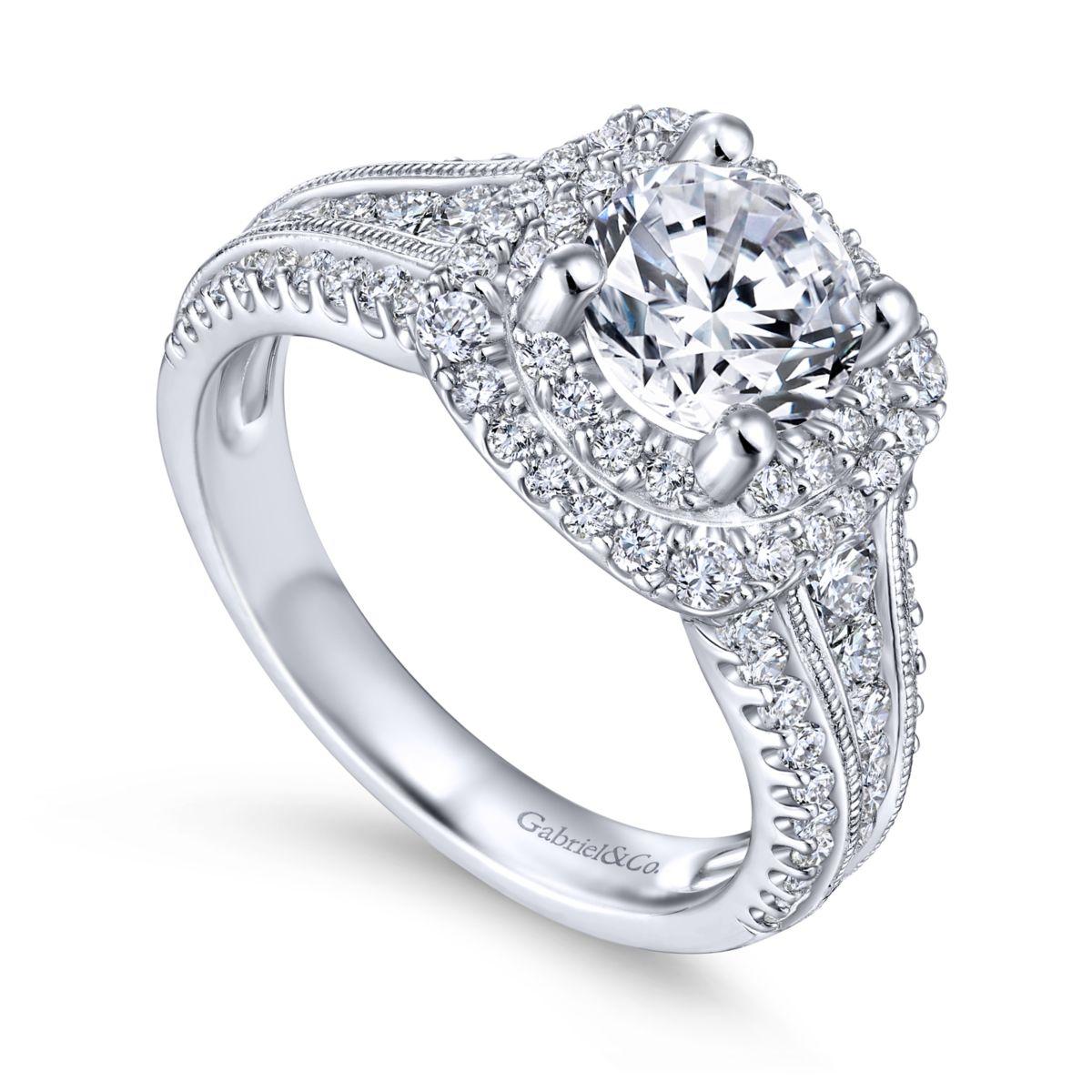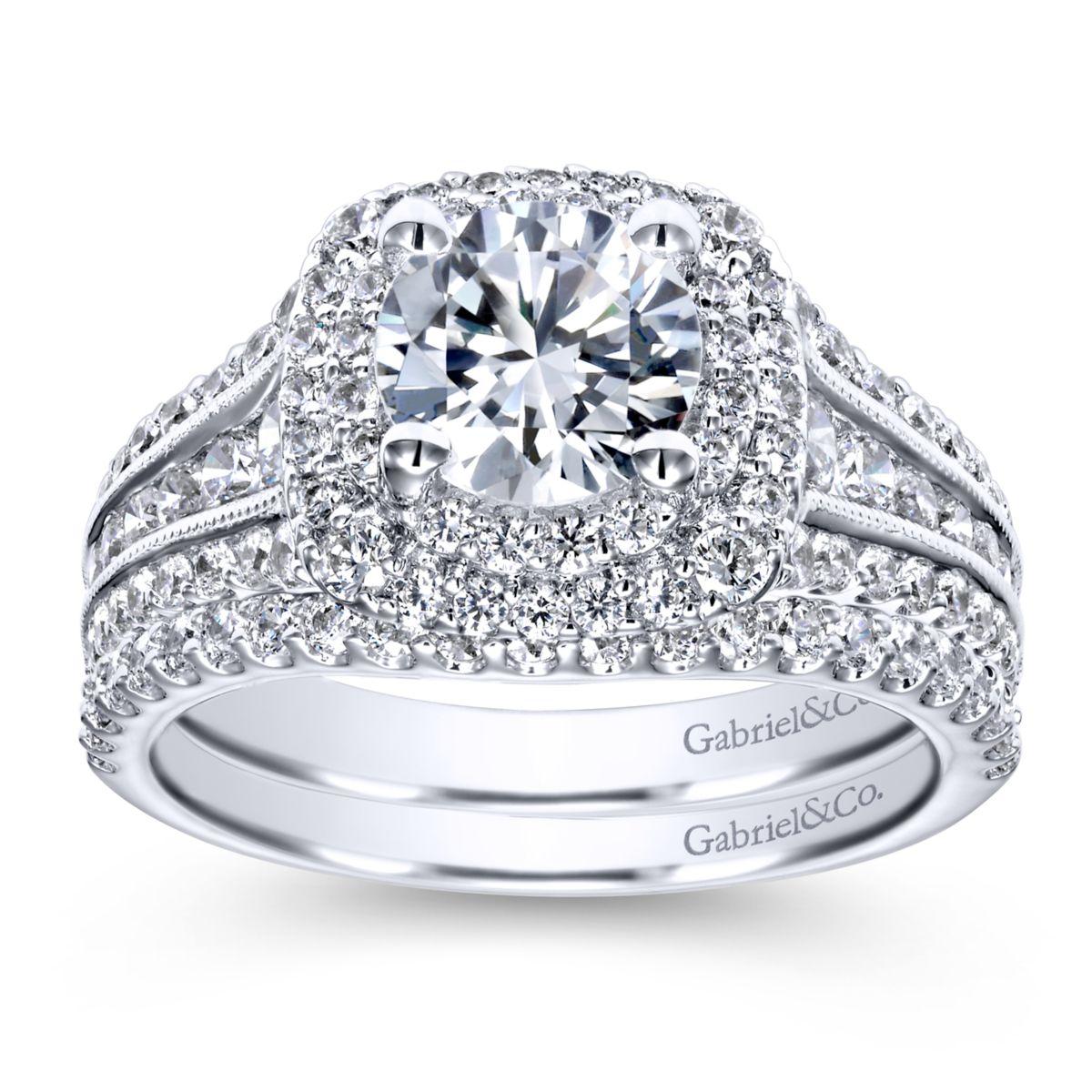 HOME / Gabriel & Co. 14k White Gold Contemporary Double Halo Engagement Ring
