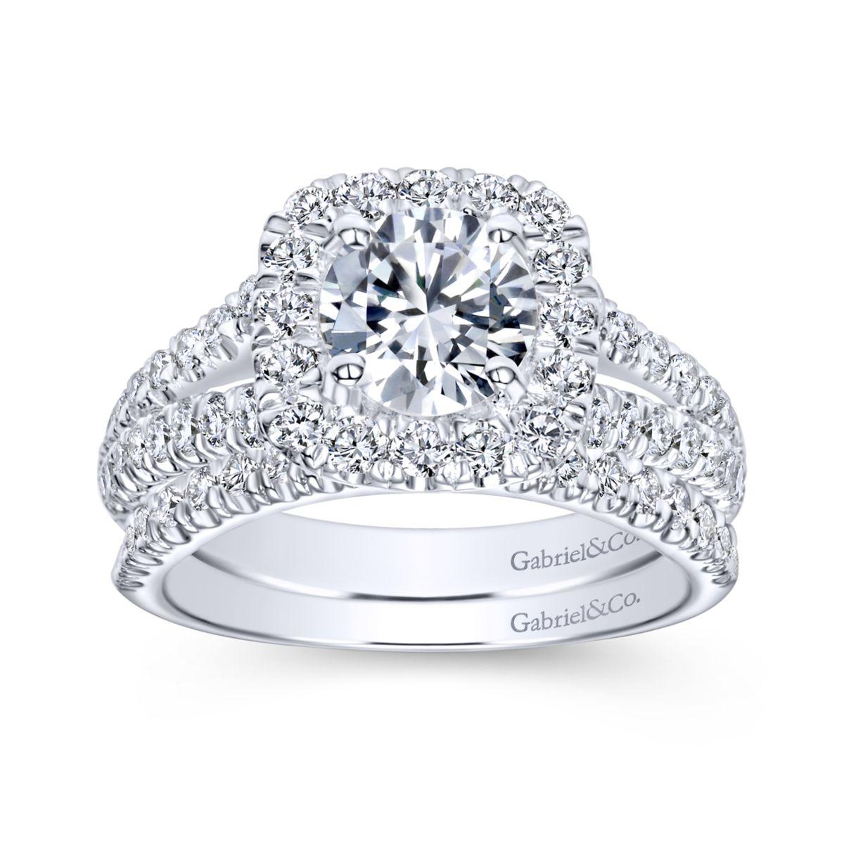 HOME / Gabriel & Co. 14k White Gold Contemporary Halo Engagement Ring