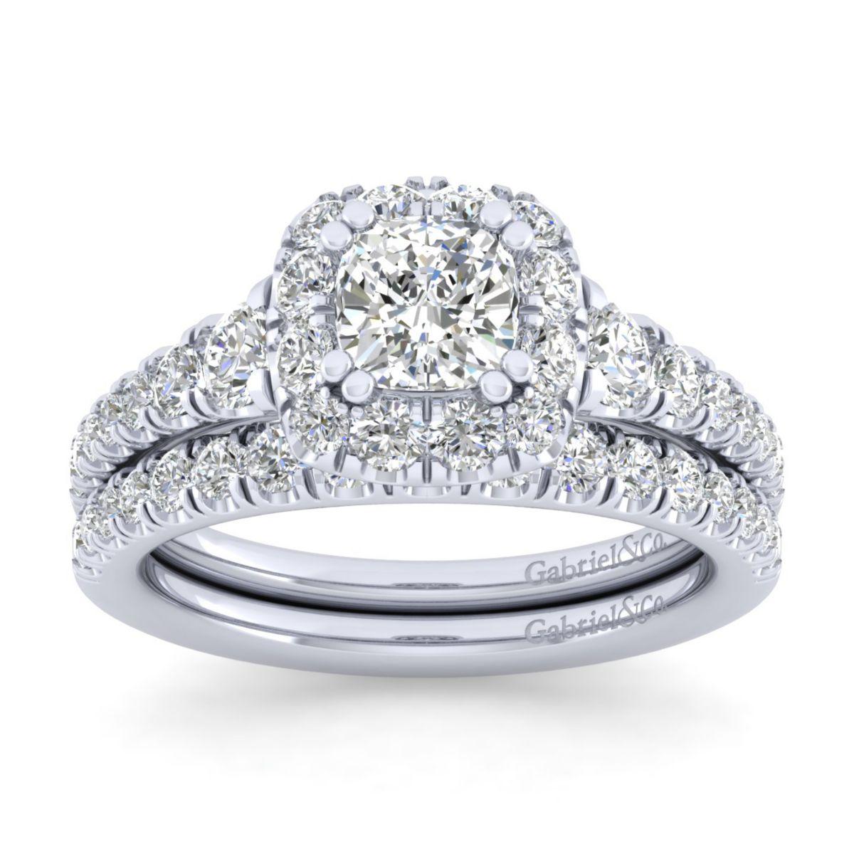 HOME / Gabriel & Co. 14k White Gold Contemporary Halo Engagement Ring
