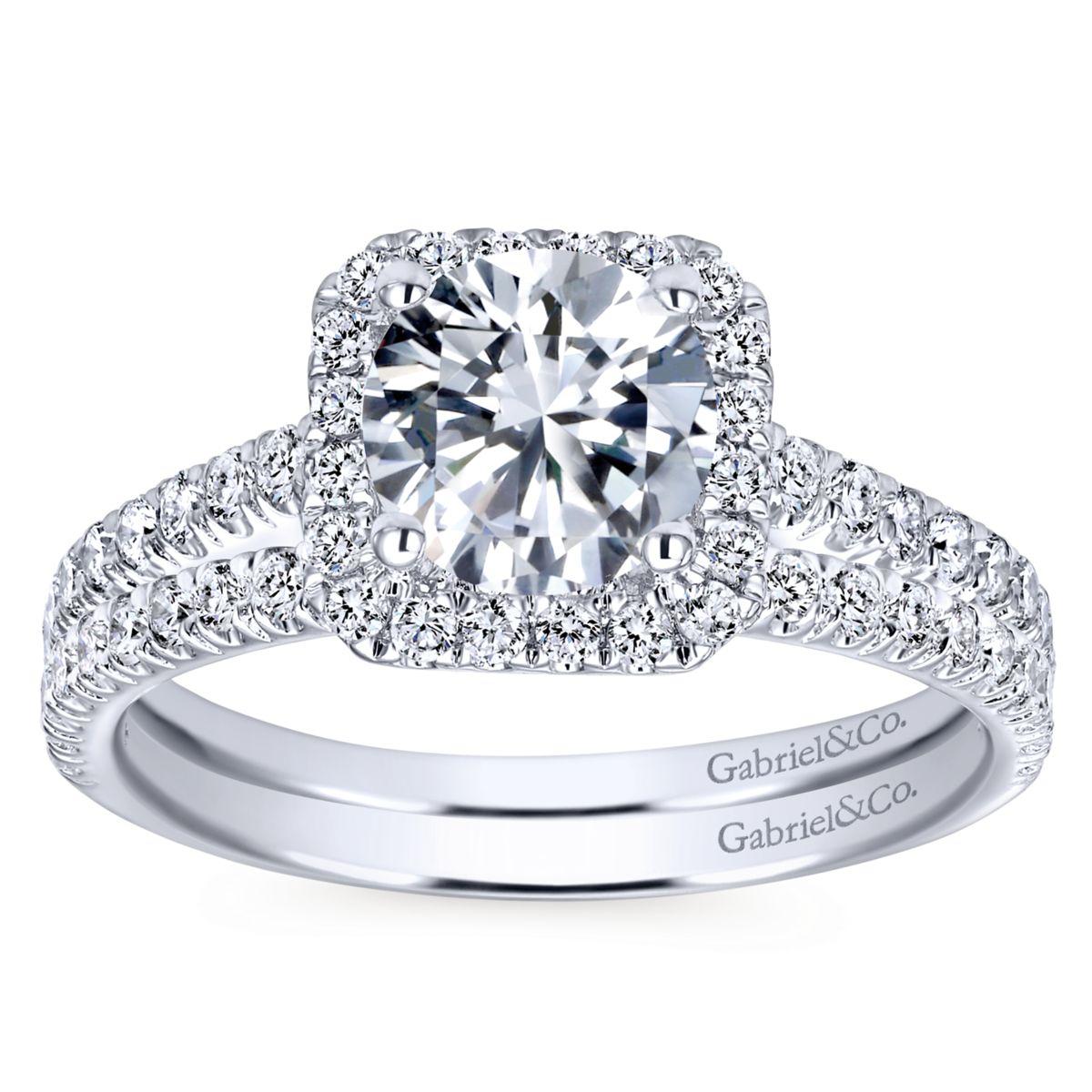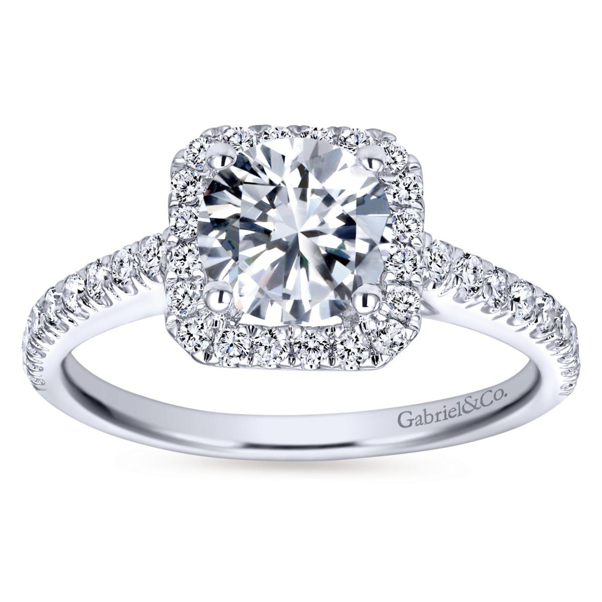 HOME / Gabriel & Co. 14k White Gold Contemporary Halo Engagement Ring