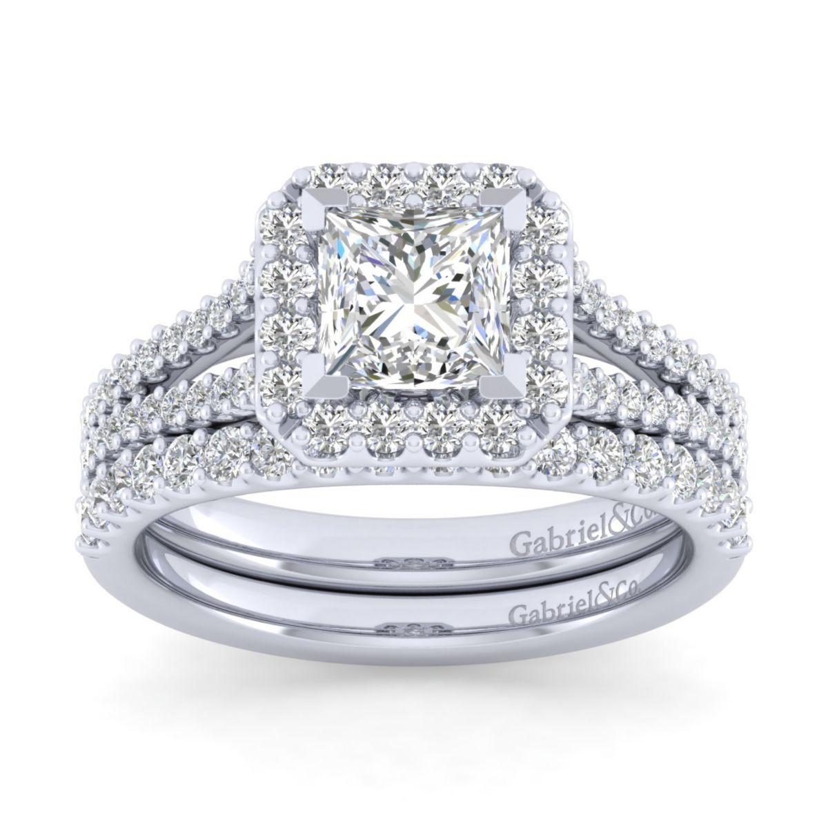 HOME / Gabriel & Co. 14k White Gold Contemporary Halo Engagement Ring