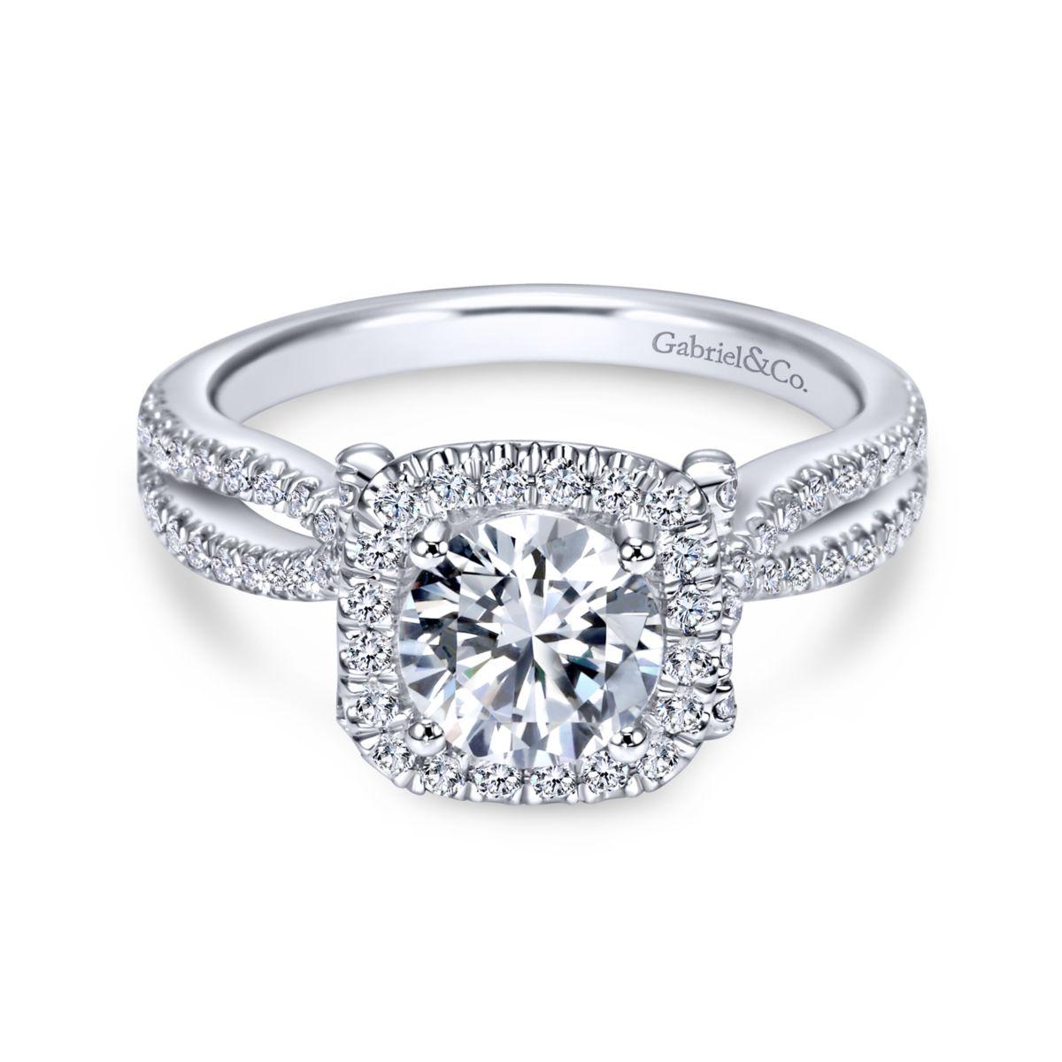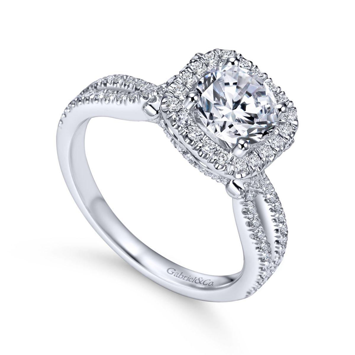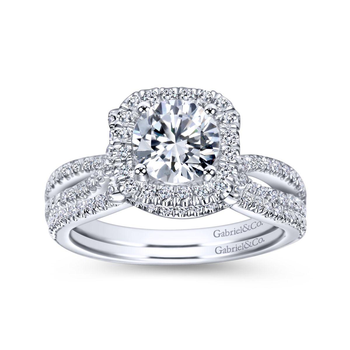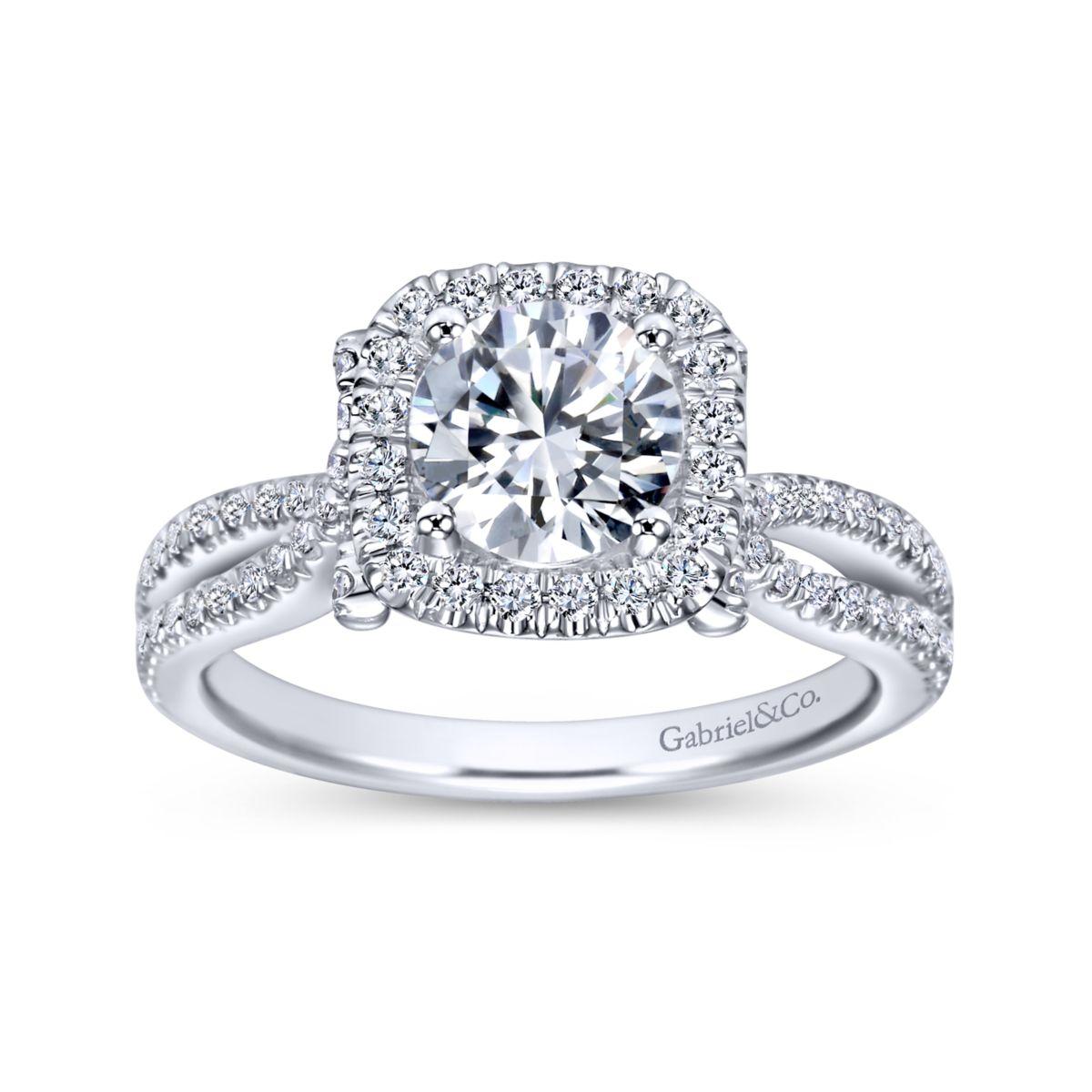 HOME / Gabriel & Co. 14k White Gold Contemporary Halo Engagement Ring