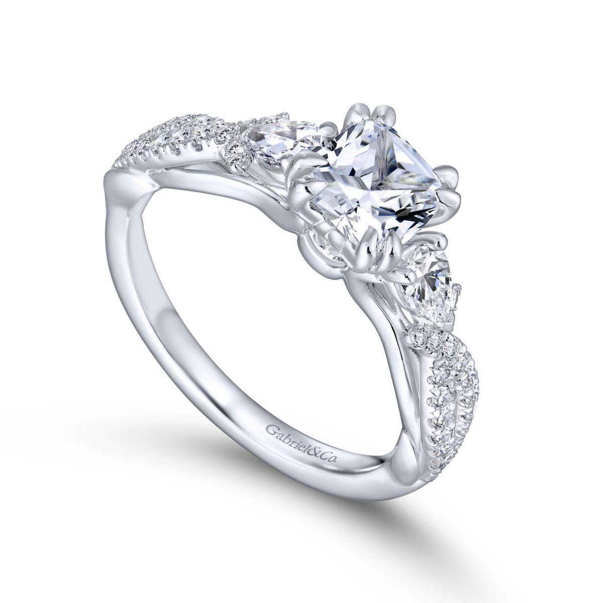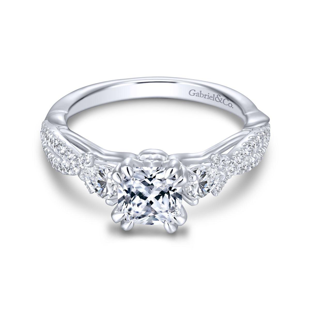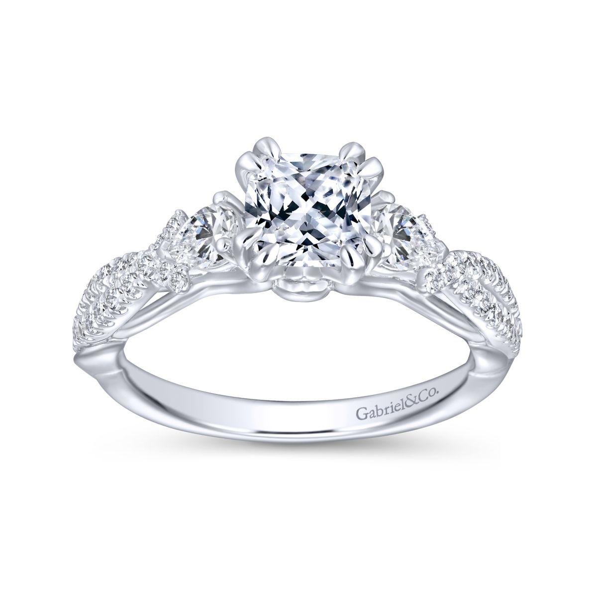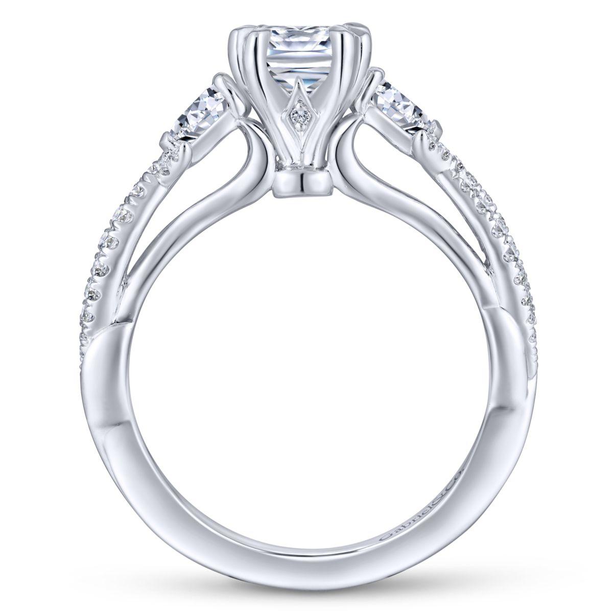 Gabriel & Co. 14k White Gold Contemporary Three Stones Engagement Ring