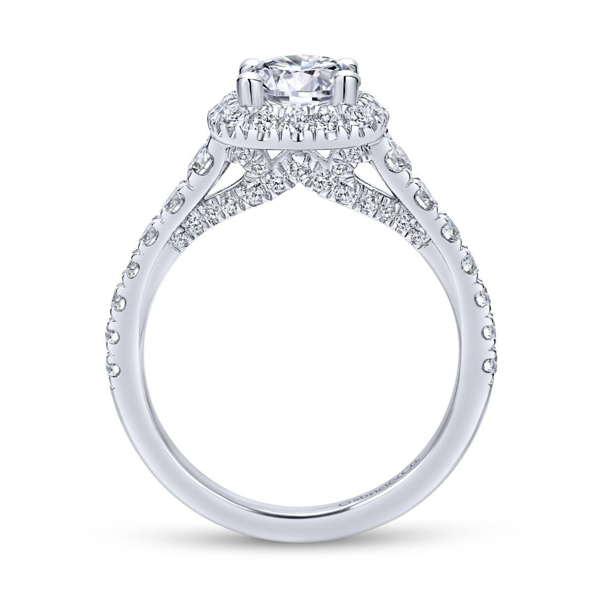 Elegantly crafted in 14k white gold, the Gabriel & Co. Entwined Halo Engagement Ring exudes timeless sophistication. With a total carat weight of 0.87, this exquisite setting is designed to showcase the beauty of your chosen center stone.