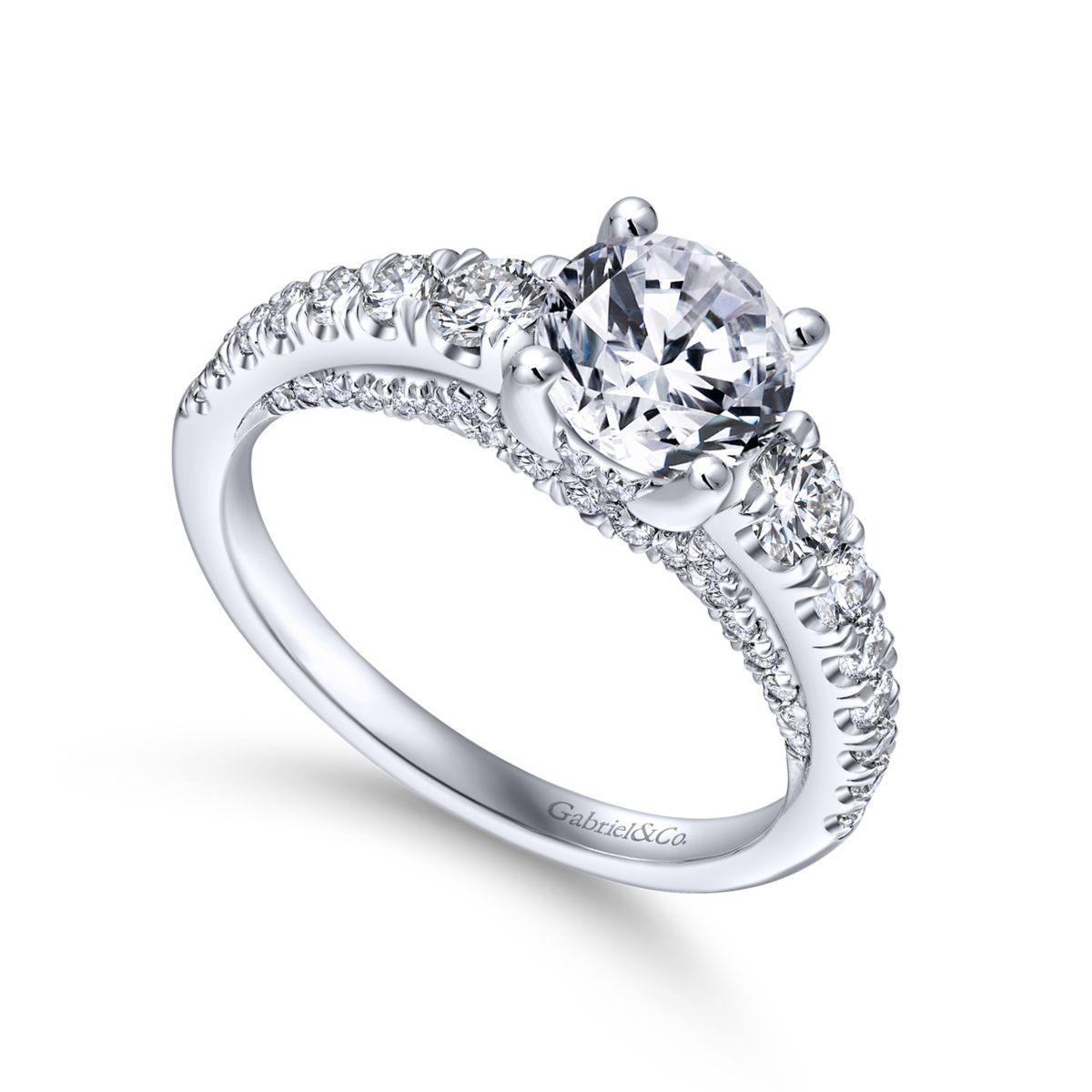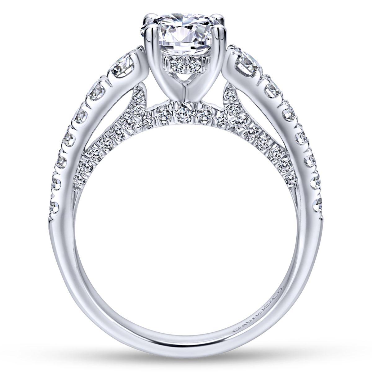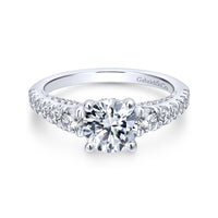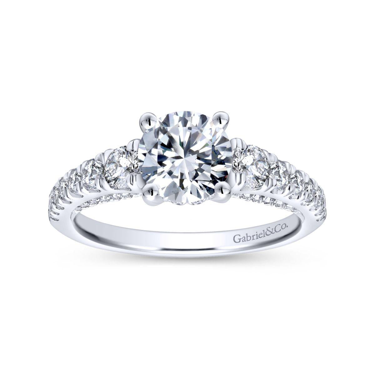 Elegantly entwined in 14k white gold, this Gabriel & Co. engagement ring exudes timeless sophistication. With a total carat weight of 0.81, it is the perfect setting to showcase your chosen center stone.