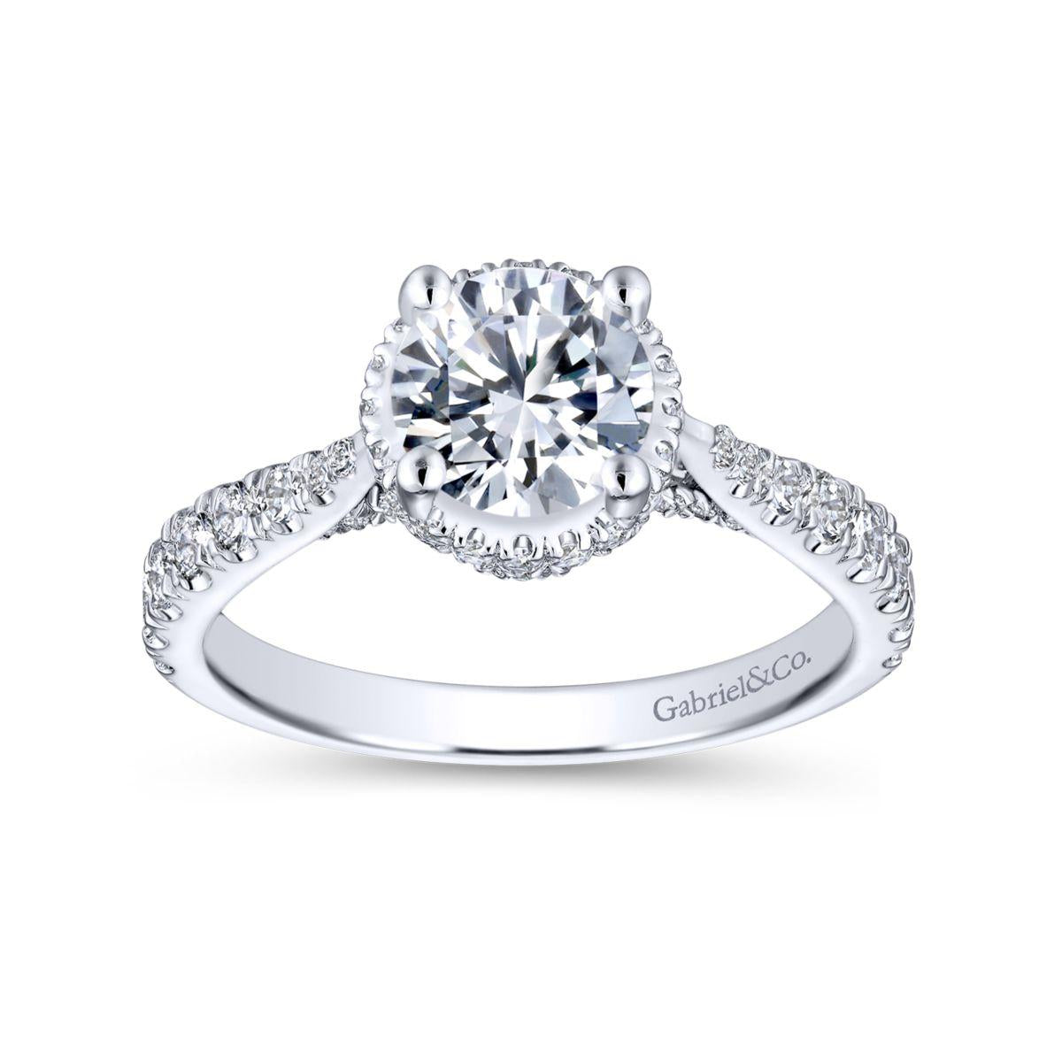 Elegantly crafted in 14k white gold, the Gabriel & Co. Infinity Straight Engagement Ring exudes timeless sophistication. With a total carat weight of 0.7, this exquisite setting awaits the perfect center stone to complete its classic allure.