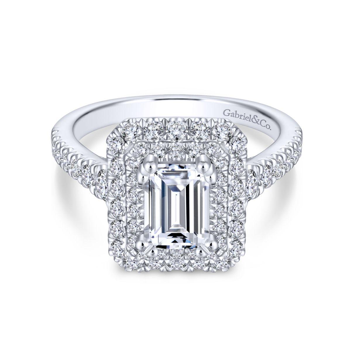 HOME / Gabriel & Co. 14k White Gold Rosette Double Halo Engagement Ring