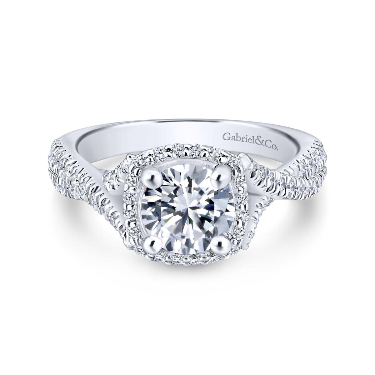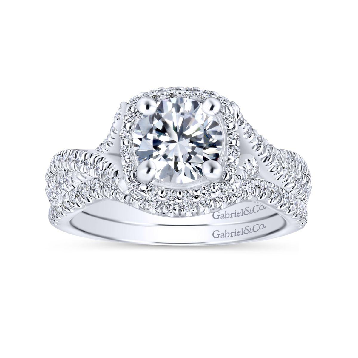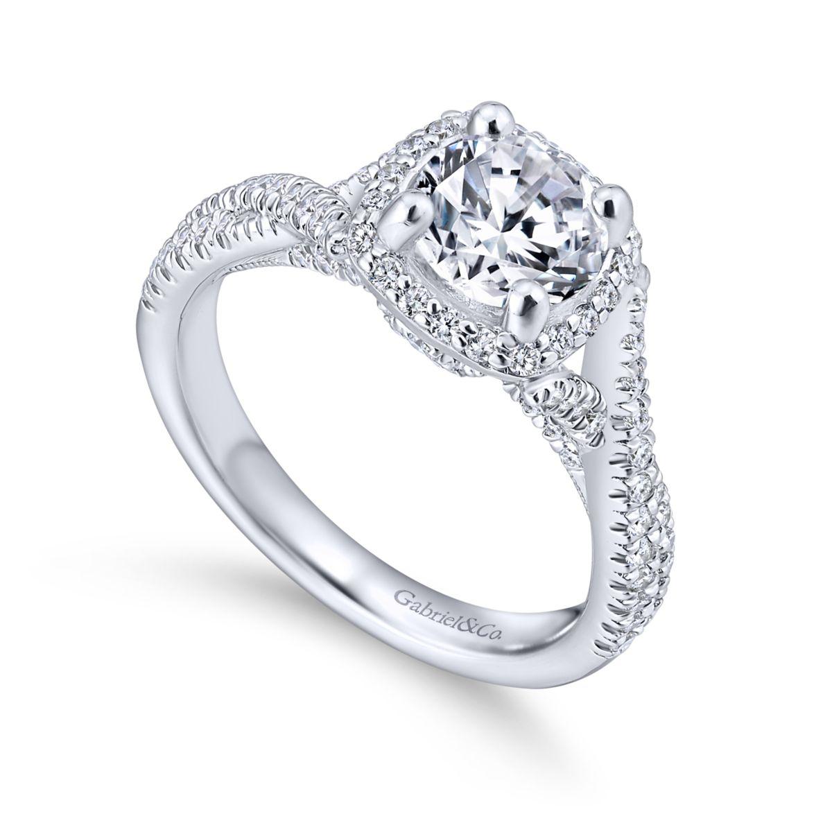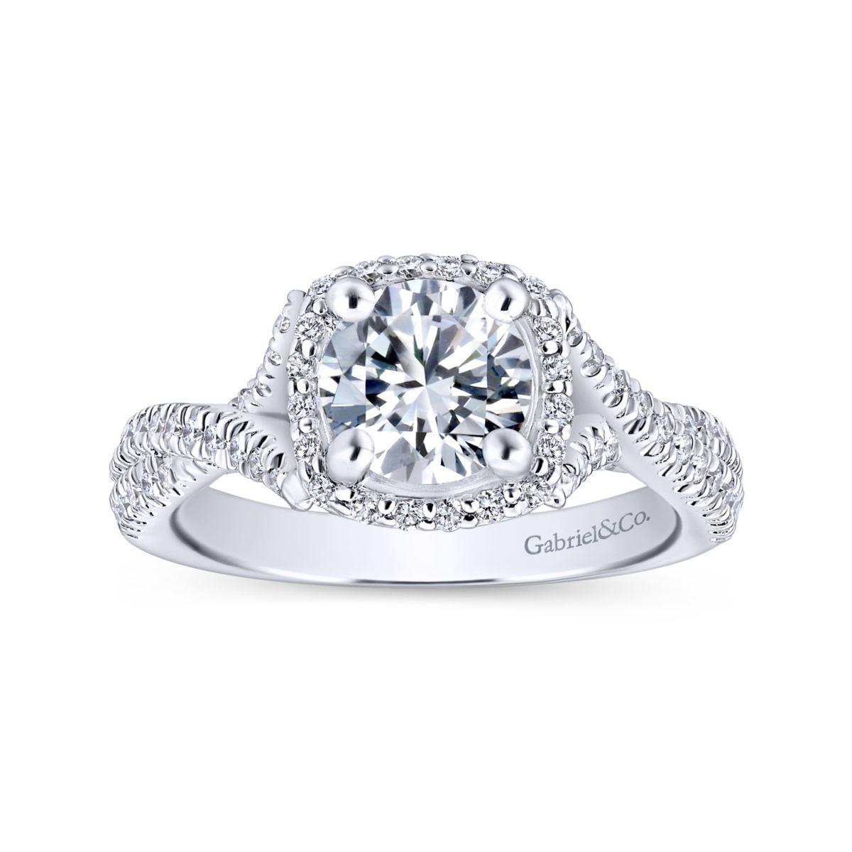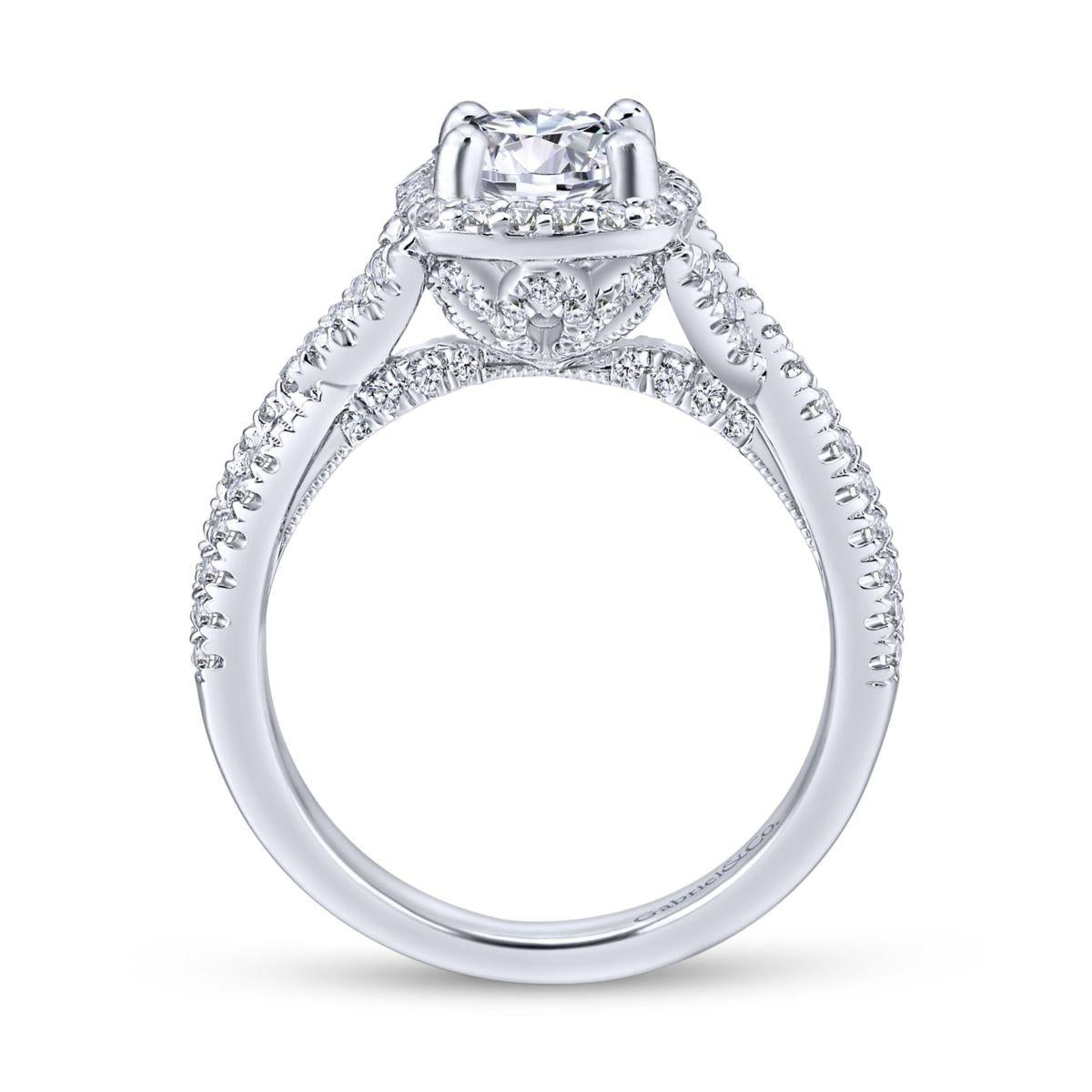 HOME / Gabriel & Co. 14k White Gold Rosette Halo Engagement Ring