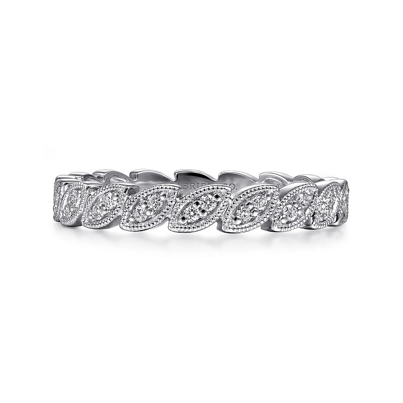 Gabriel & Co | 14K White Gold Scalloped Marquise Stackable Diamond Ring