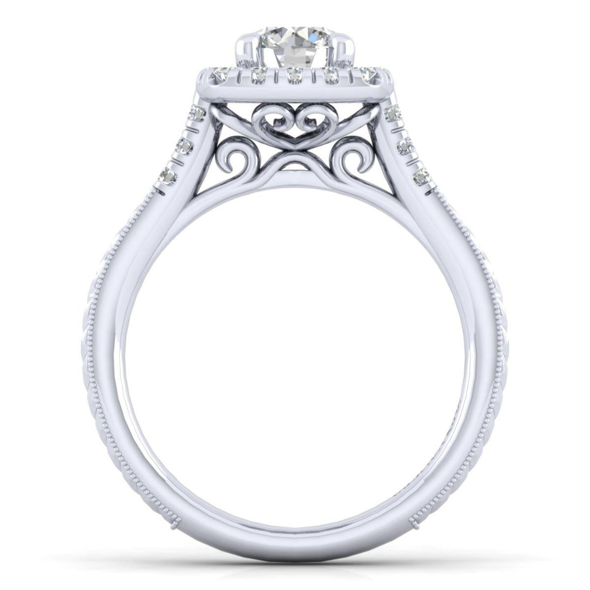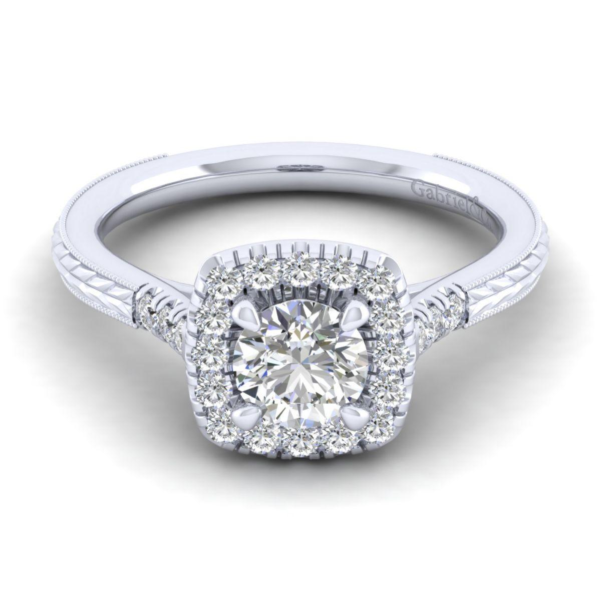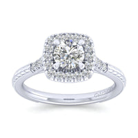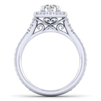 HOME / Gabriel & Co. 14k White Gold Victorian Halo Engagement Ring