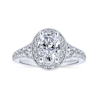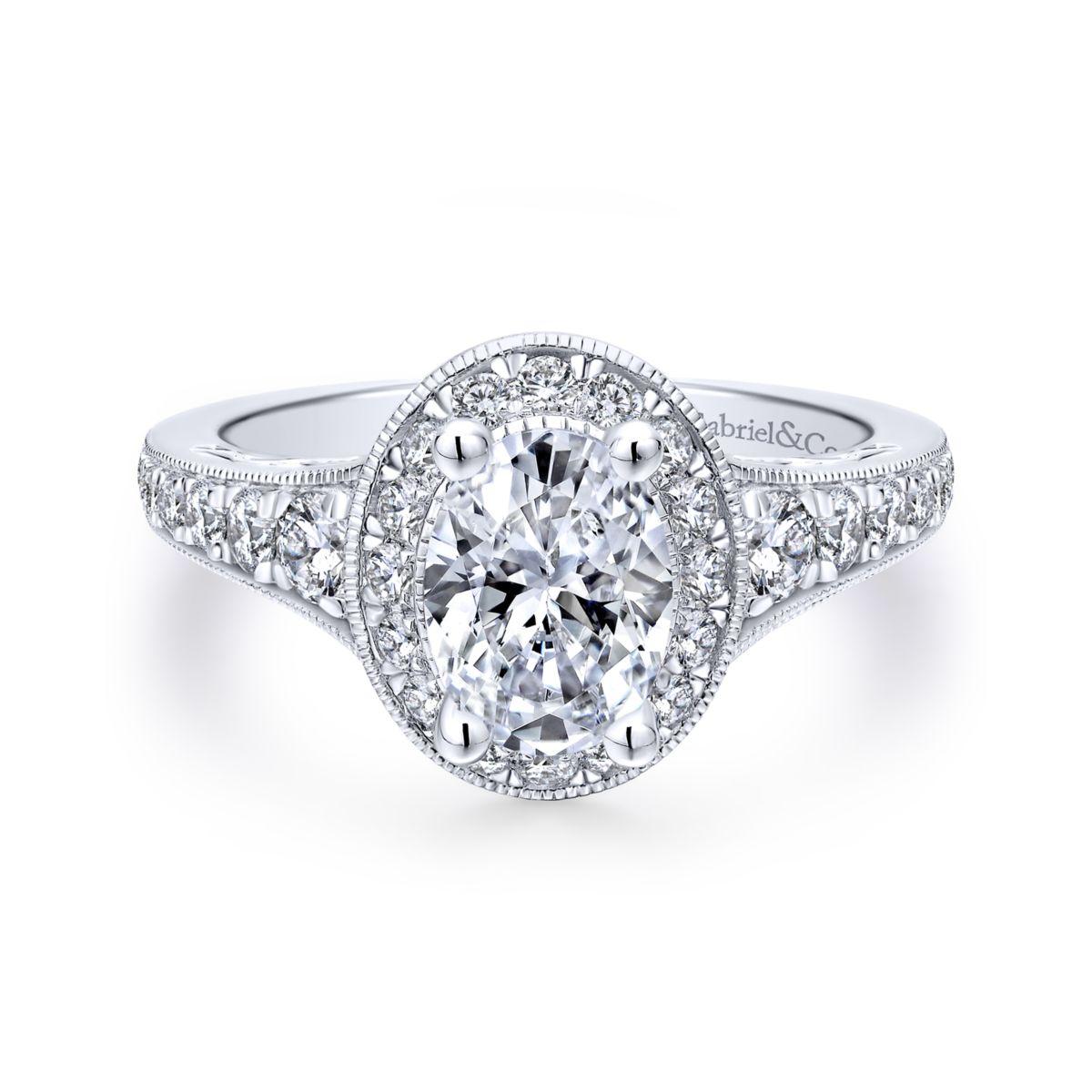 HOME / Gabriel & Co. 14k White Gold Victorian Halo Engagement Ring