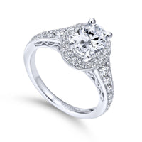 Gabriel & Co. 14k White Gold Victorian Halo Engagement Ring