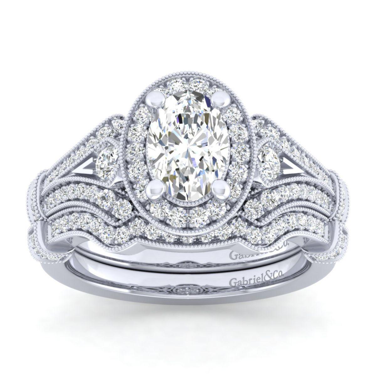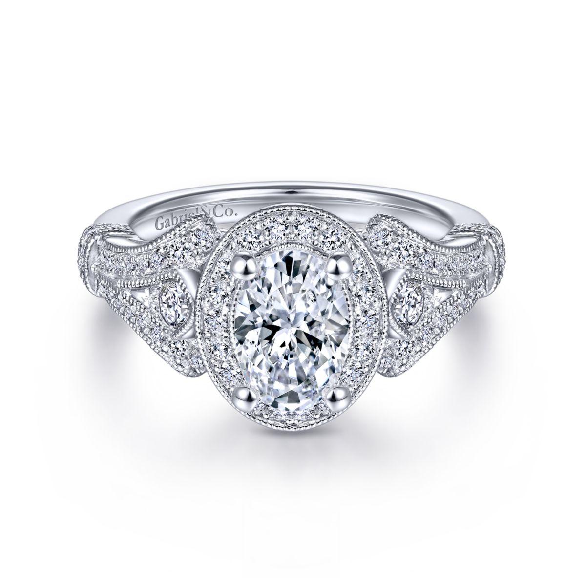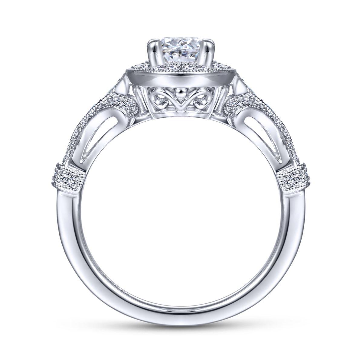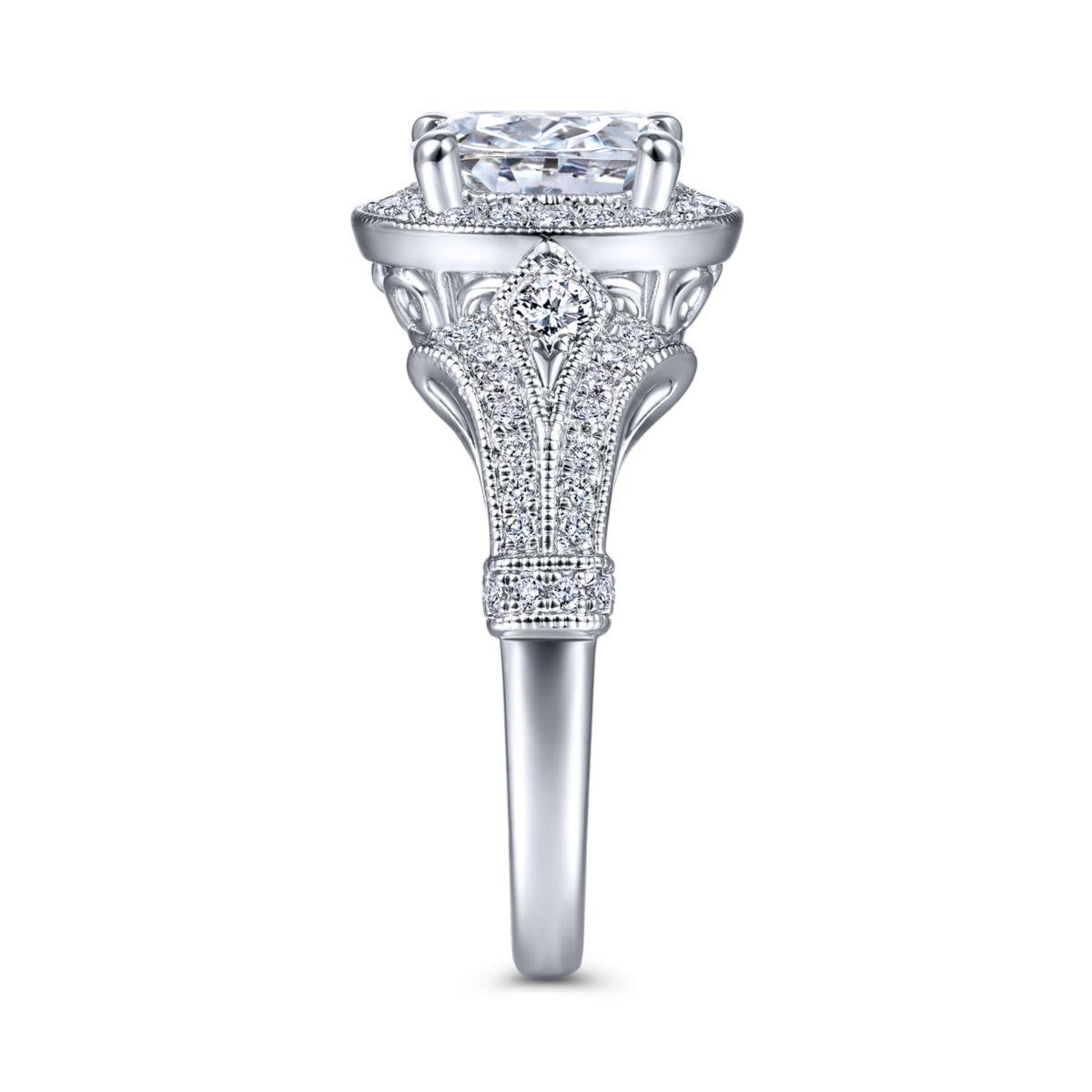 HOME / Gabriel & Co. 14k White Gold Victorian Halo Engagement Ring