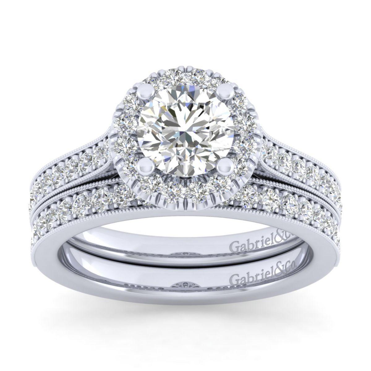 HOME / Gabriel & Co. 14k White Gold Victorian Halo Engagement Ring
