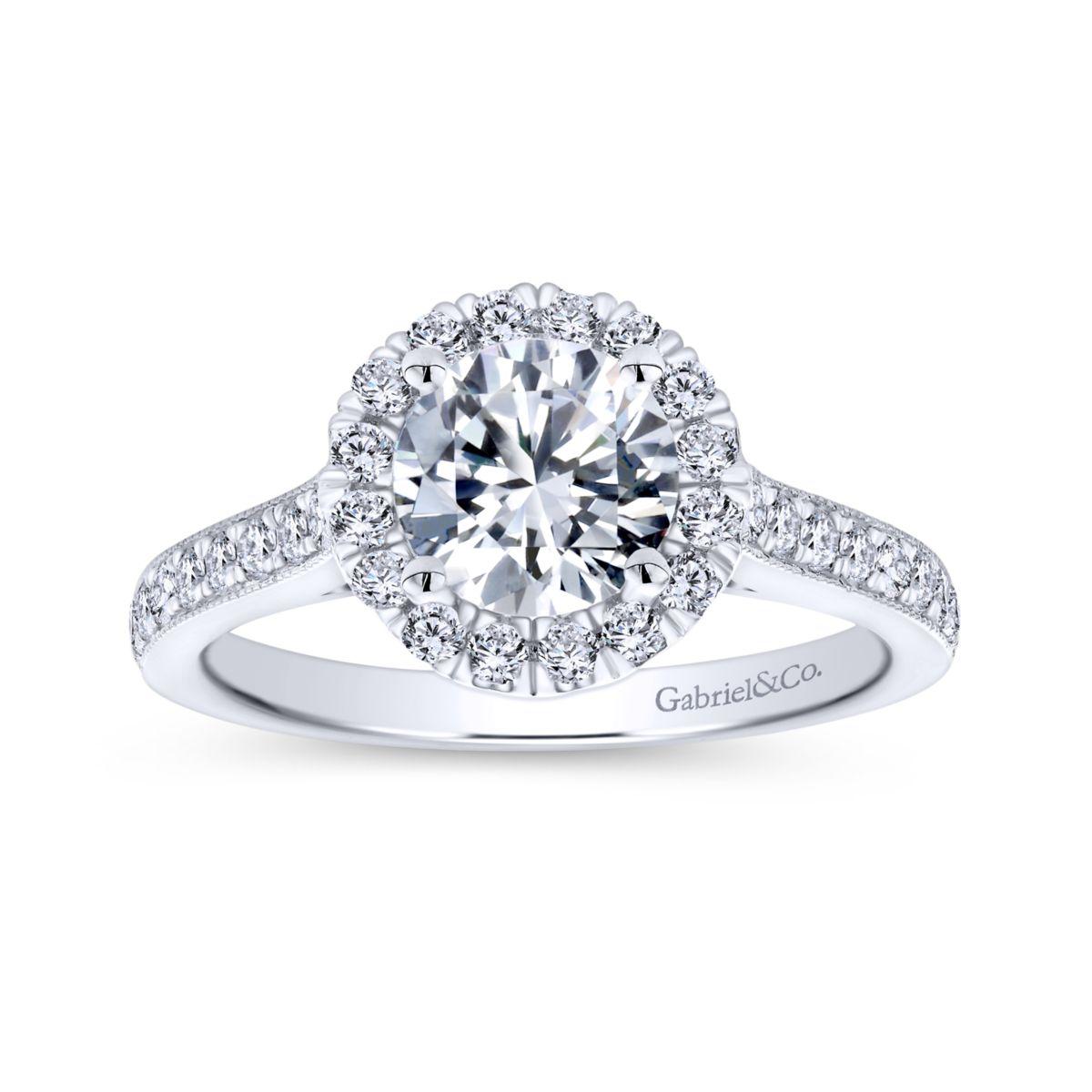 Gabriel & Co. 14k White Gold Victorian Halo Engagement Ring