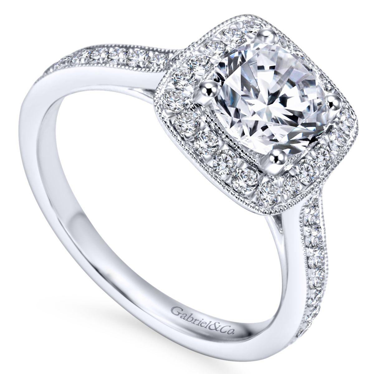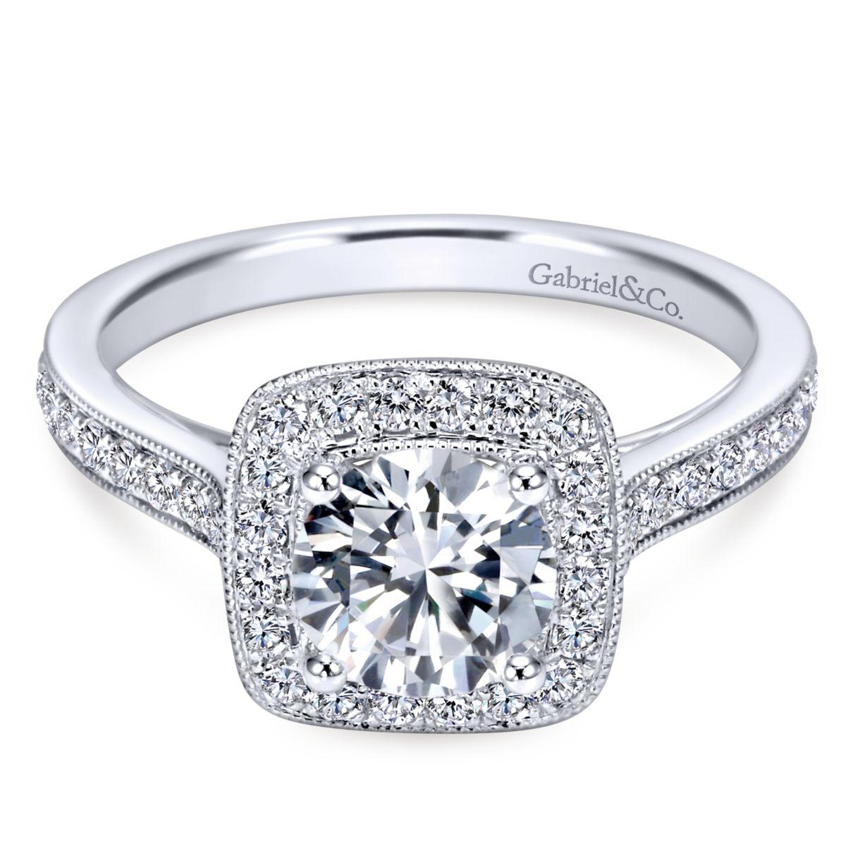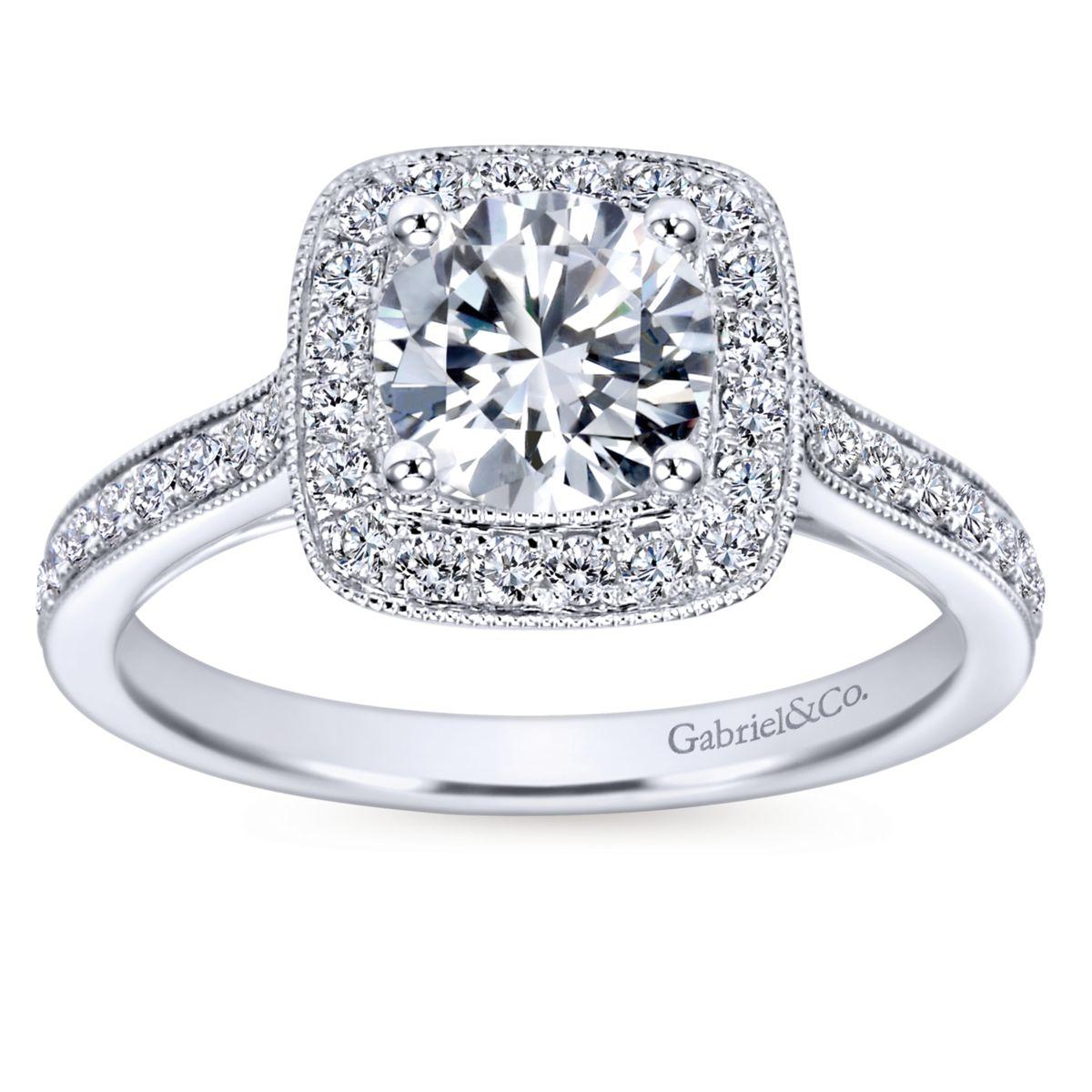 Gabriel & Co. 14k White Gold Victorian Halo Engagement Ring