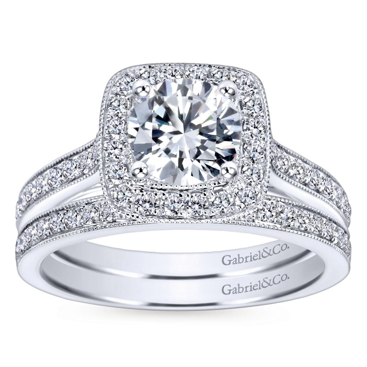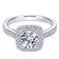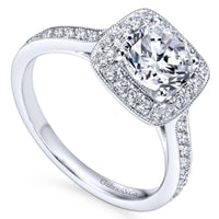 HOME / Gabriel & Co. 14k White Gold Victorian Halo Engagement Ring