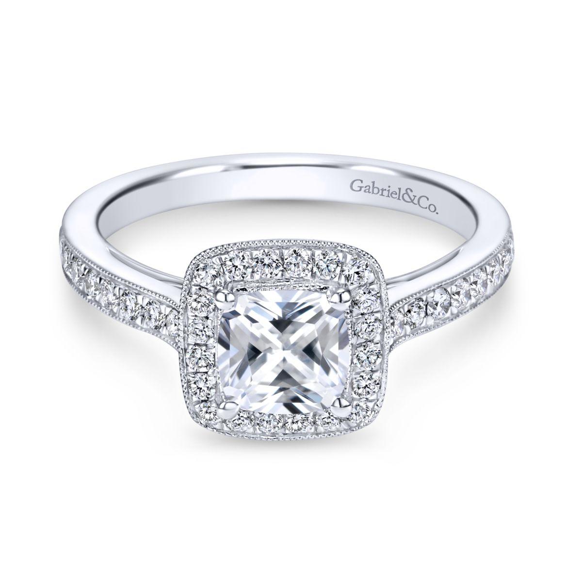 Gabriel & Co. 14k White Gold Victorian Halo Engagement Ring
