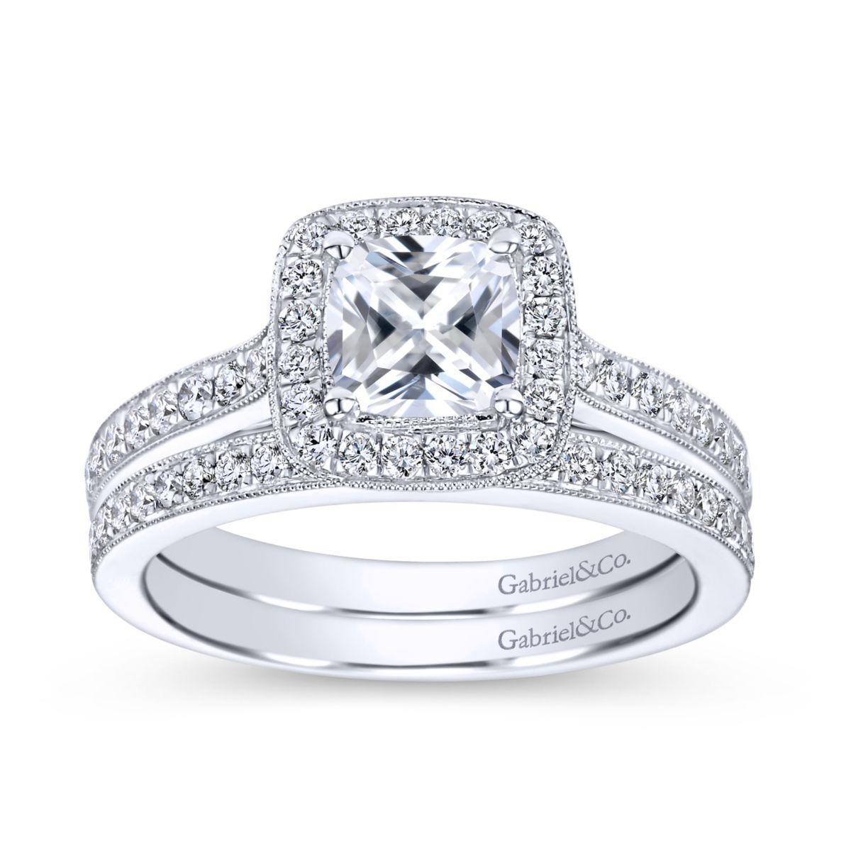 HOME / Gabriel & Co. 14k White Gold Victorian Halo Engagement Ring