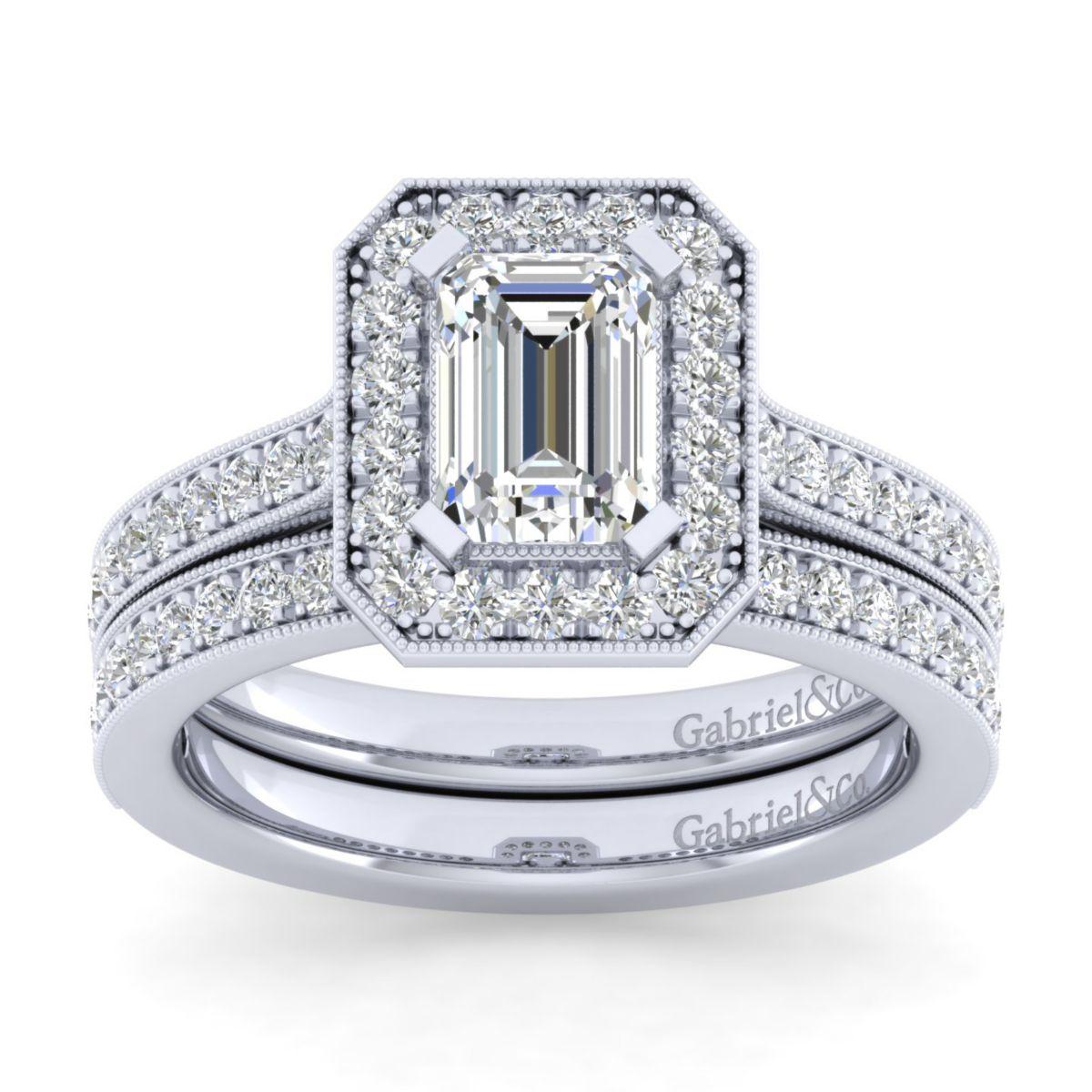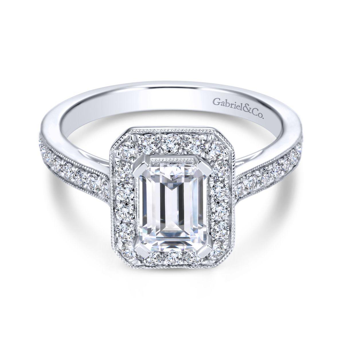 HOME / Gabriel & Co. 14k White Gold Victorian Halo Engagement Ring