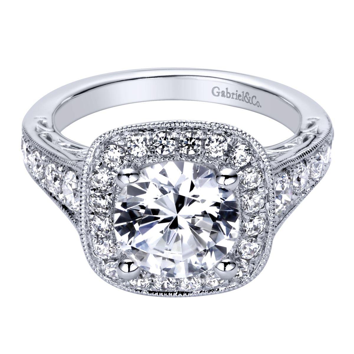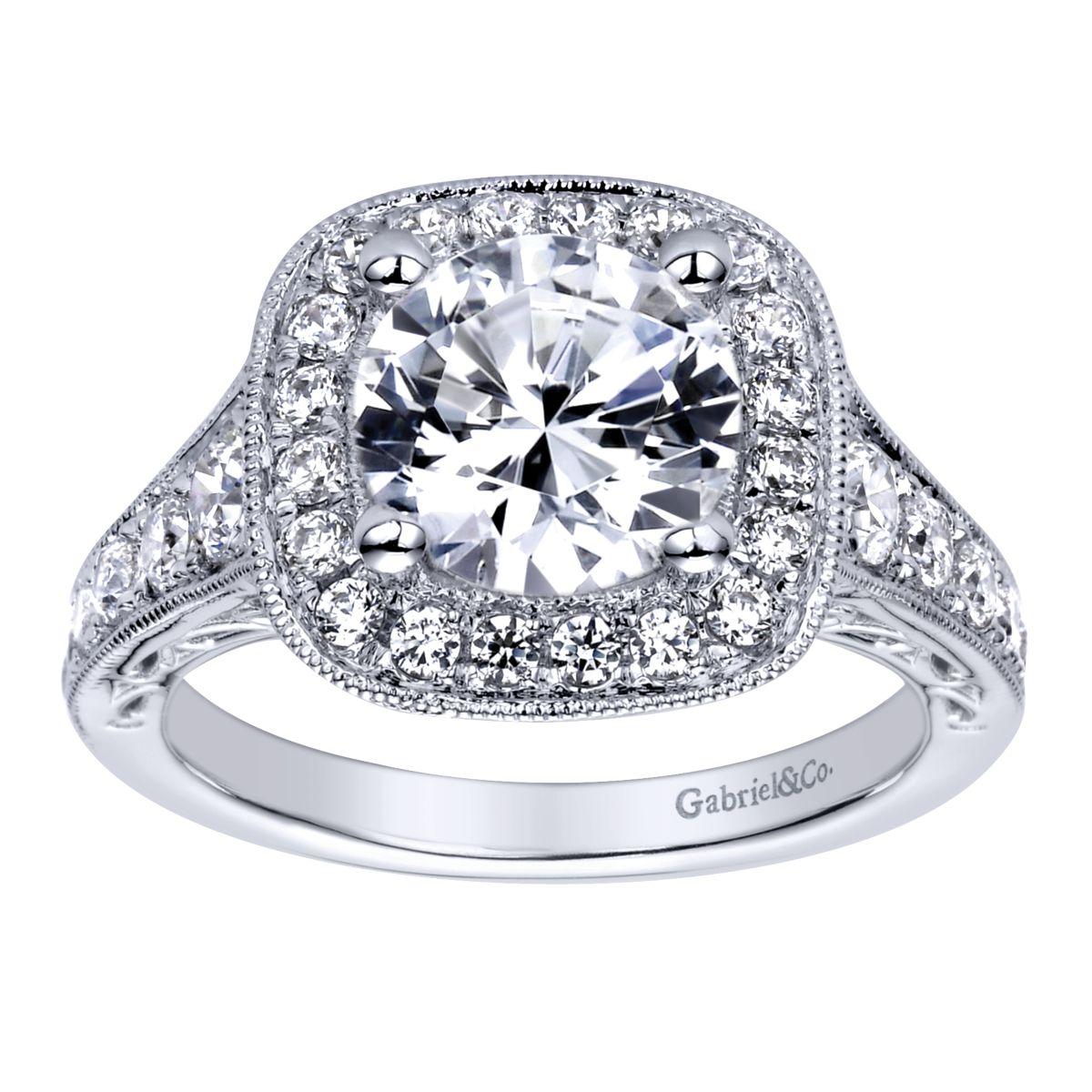 Gabriel & Co. 14k White Gold Victorian Halo Engagement Ring