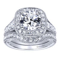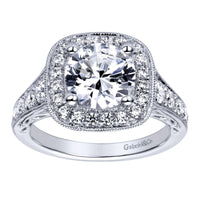 HOME / Gabriel & Co. 14k White Gold Victorian Halo Engagement Ring