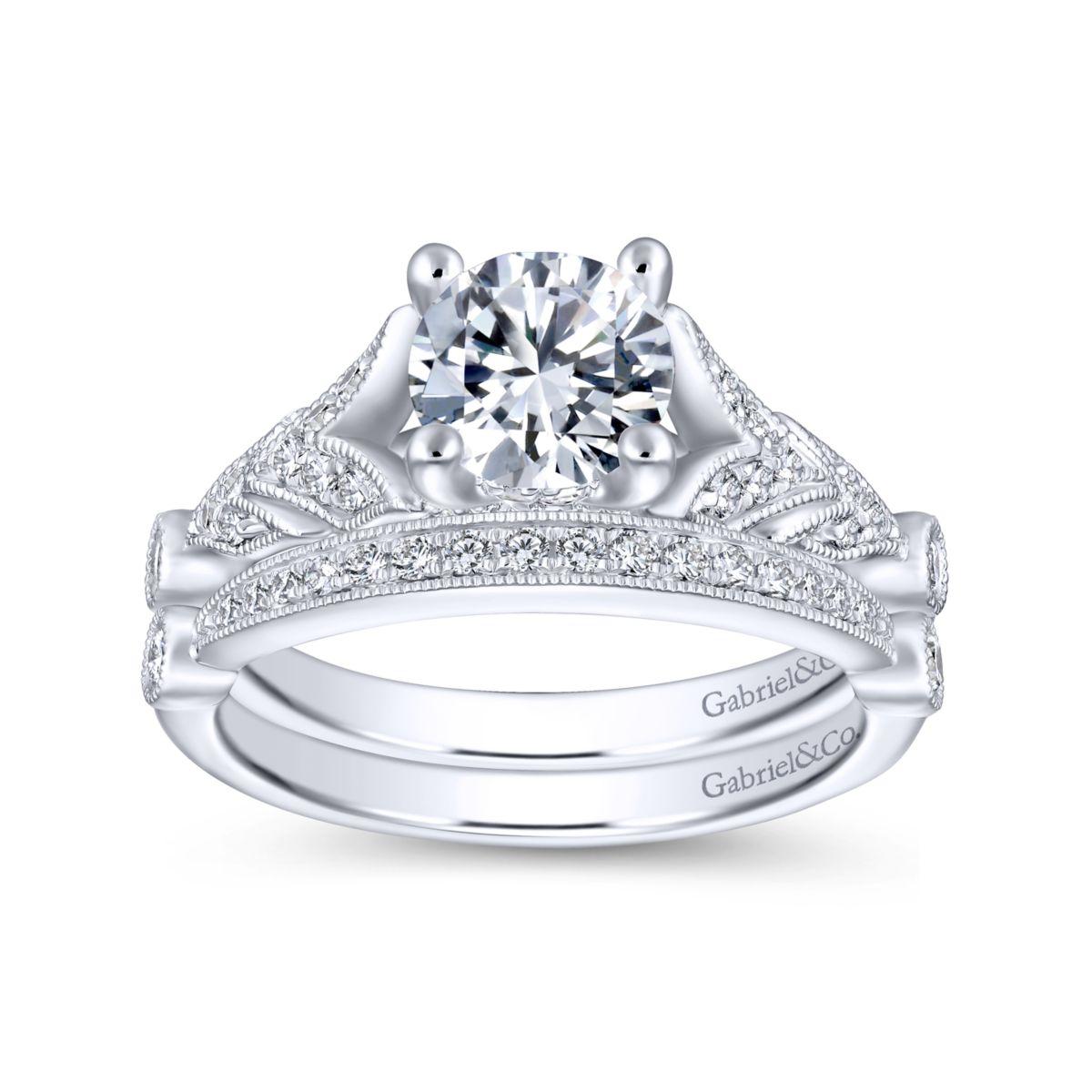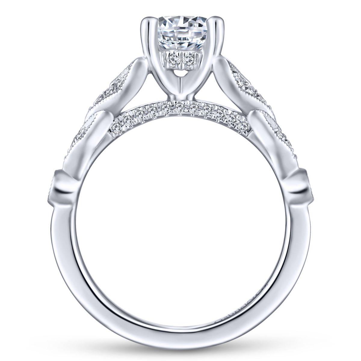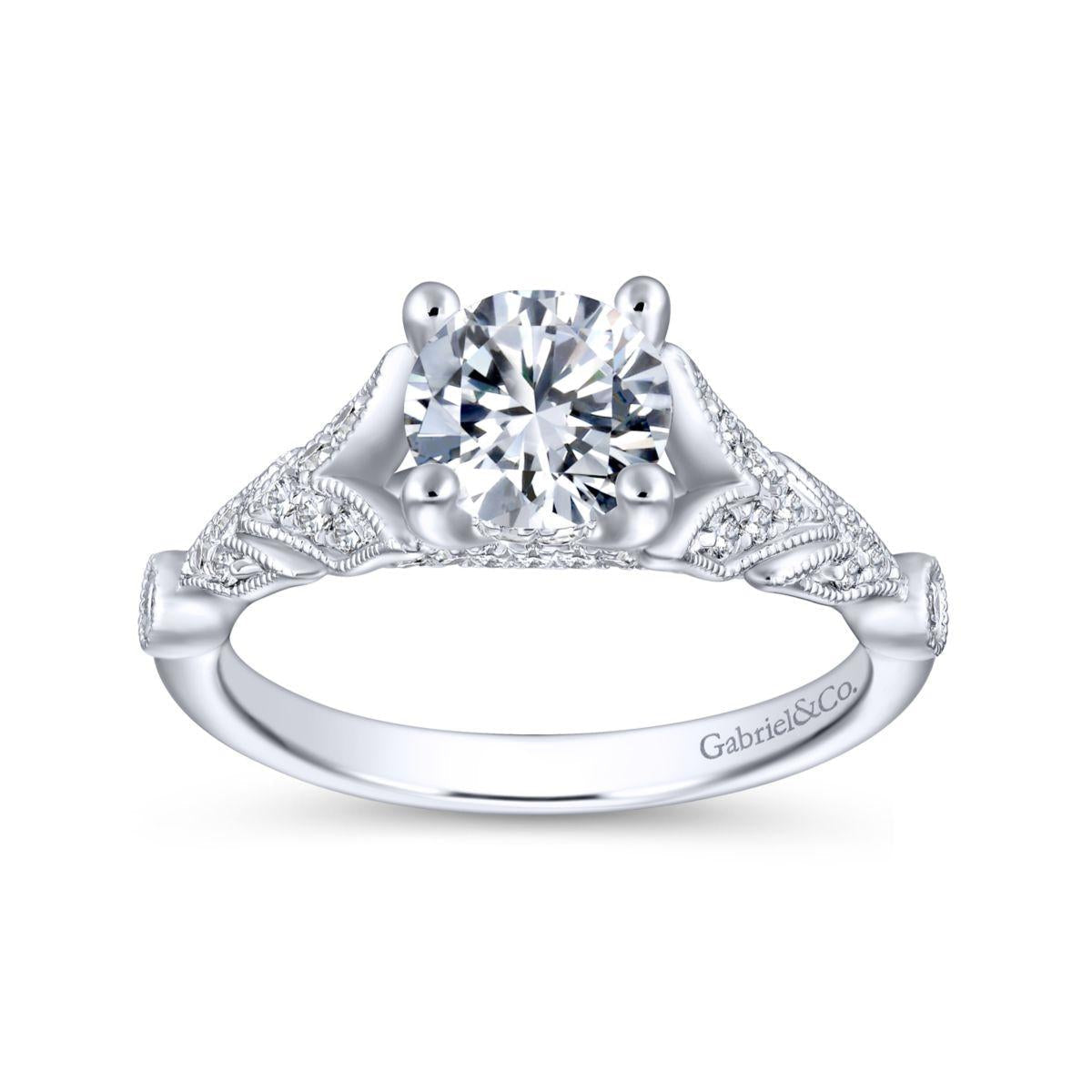 HOME / Gabriel & Co. 14k White Gold Victorian Split Shank Engagement Ring