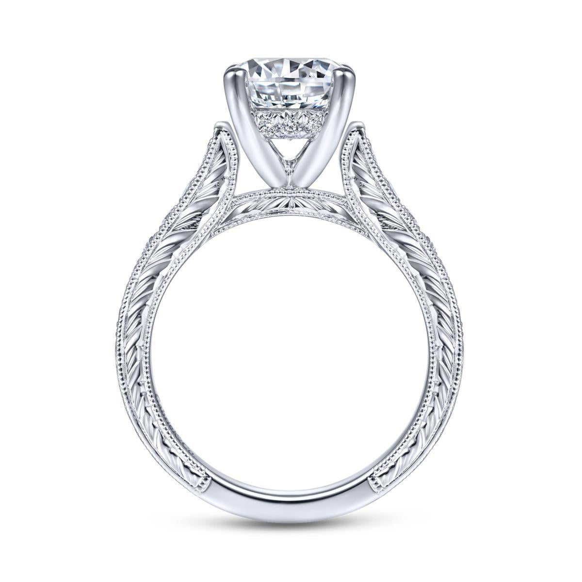 HOME / Gabriel & Co. 14k White Gold Victorian Straight Engagement Ring