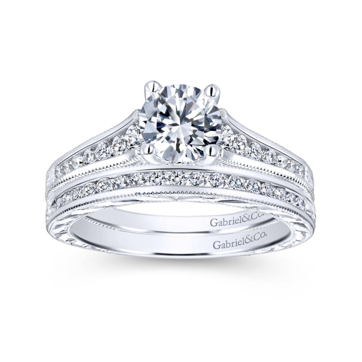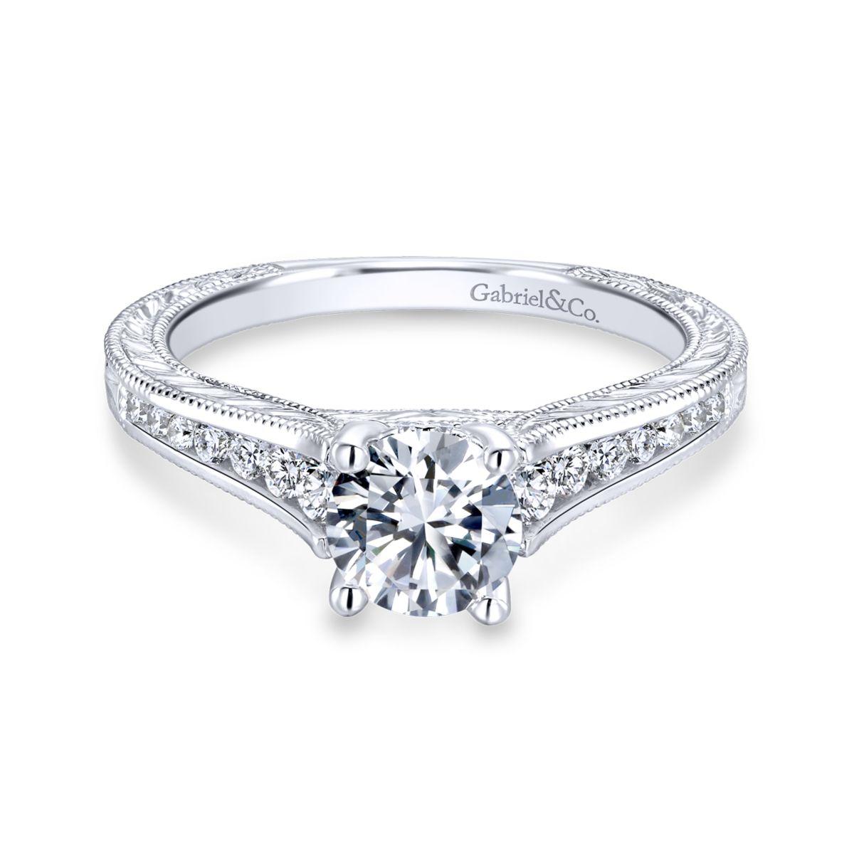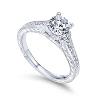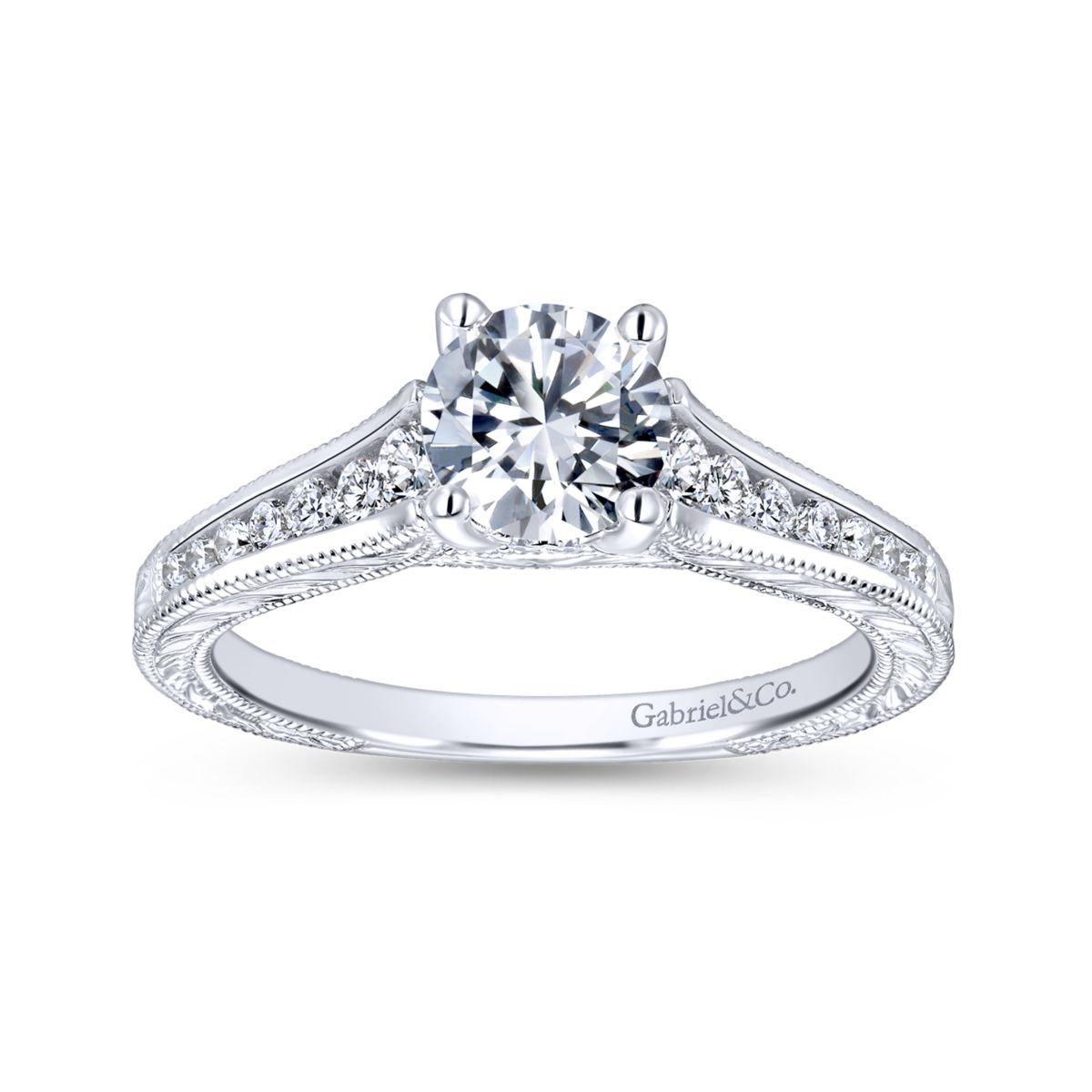 Gabriel & Co. 14k White Gold Victorian Straight Engagement Ring