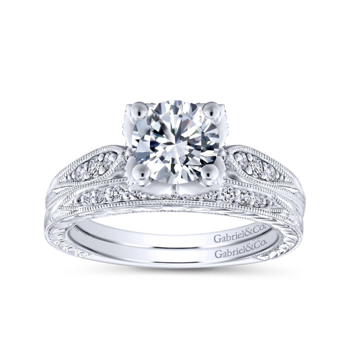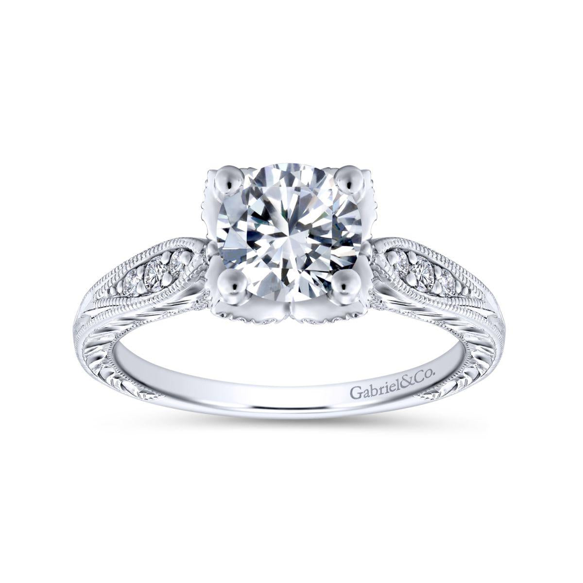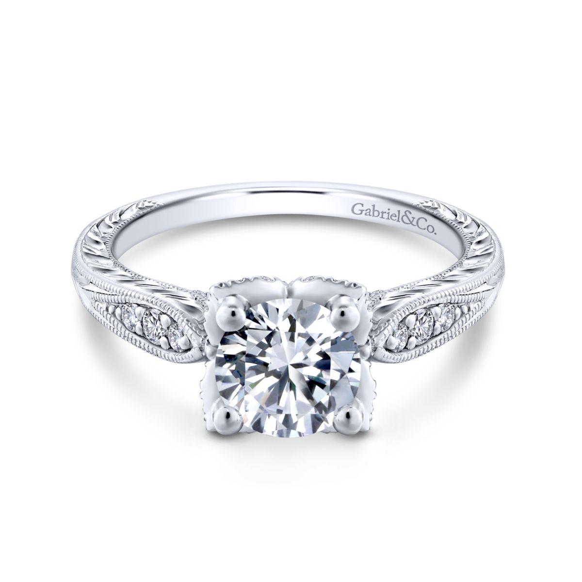 HOME / Gabriel & Co. 14k White Gold Victorian Straight Engagement Ring