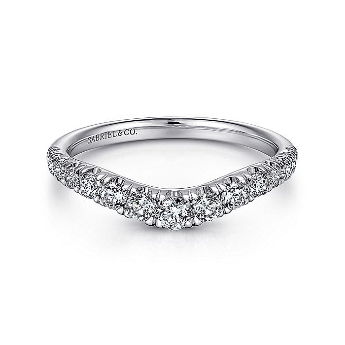 Gabriel & Co. AN10958W44JJ Curved 14K White Gold French Pavé Set Diamond Wedding Band