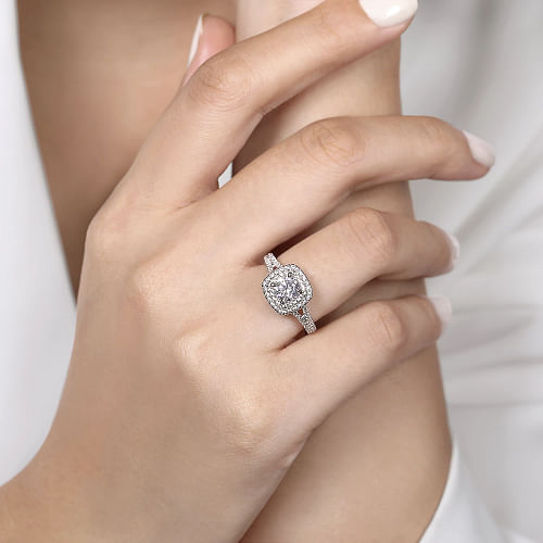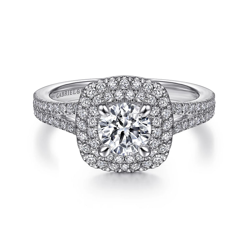 Gabriel & Co | Bette - 14K White Gold Round Double Halo Diamond Engagement Ring