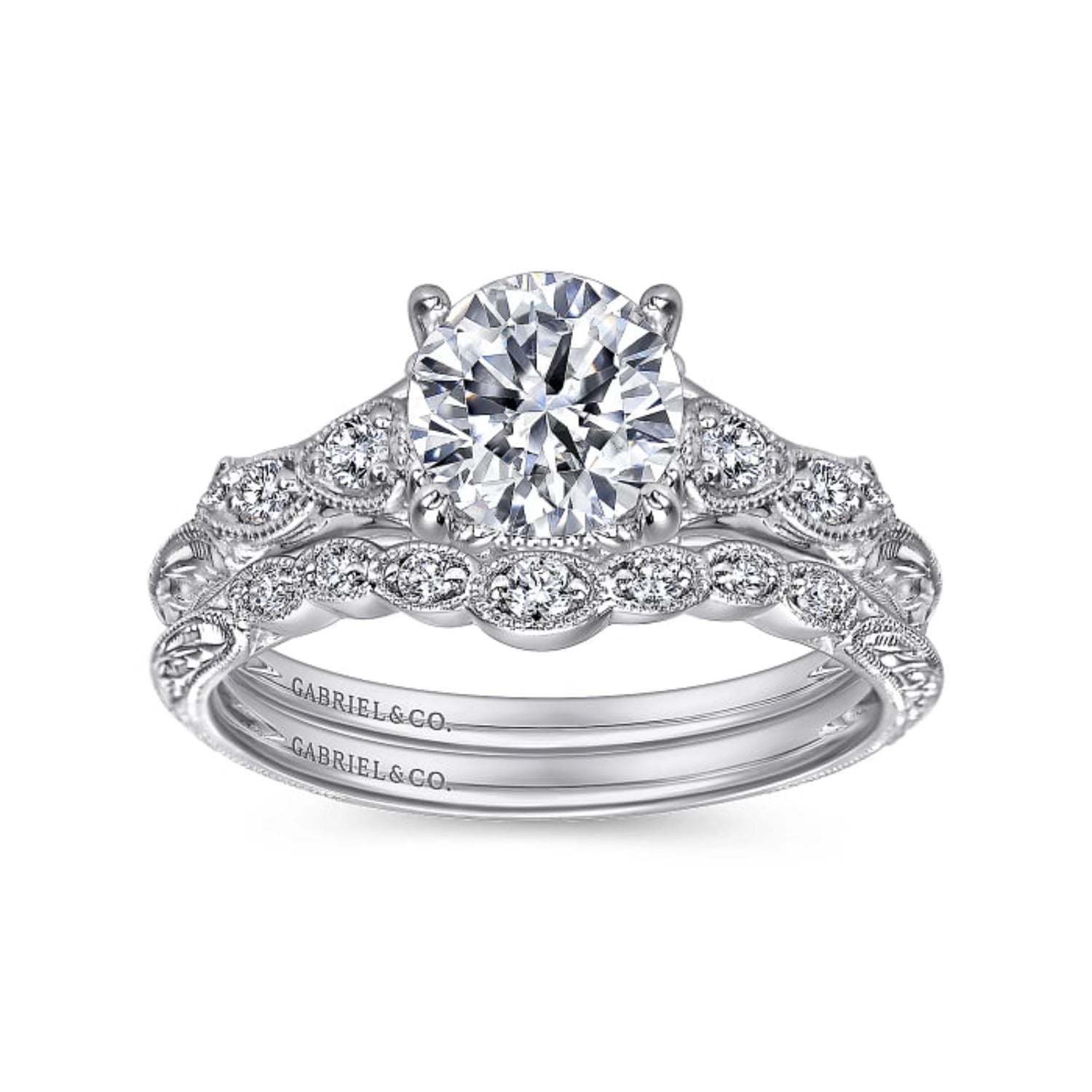 Gabriel & Co. "Chelsea" Curved Engraved Diamond Wedding Band