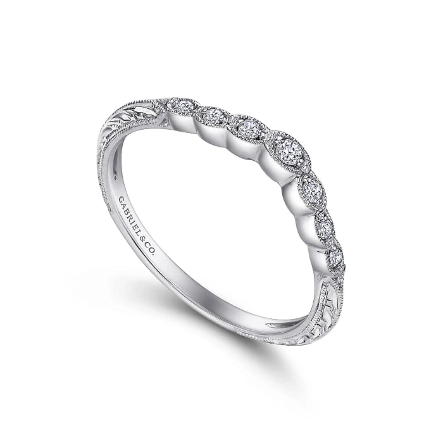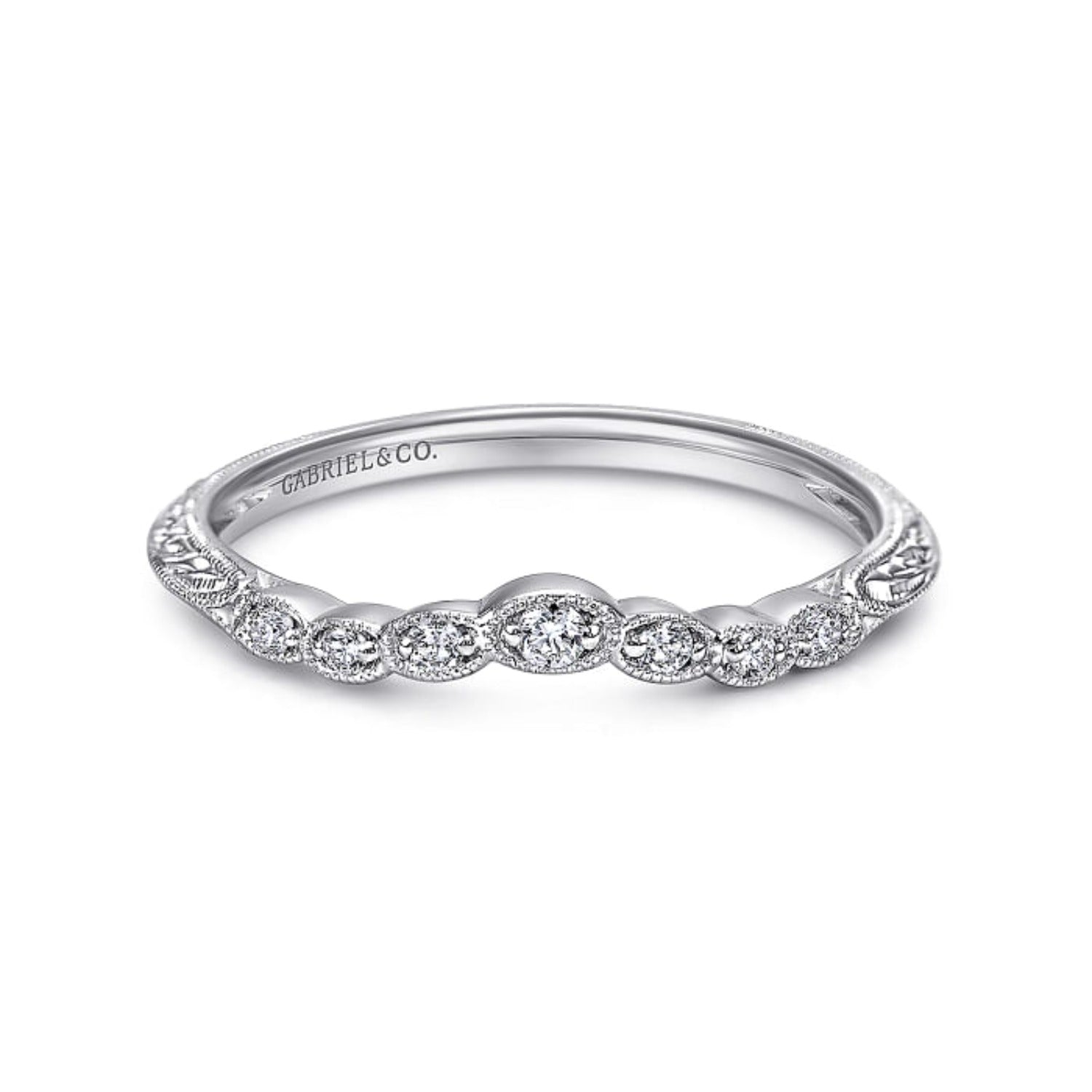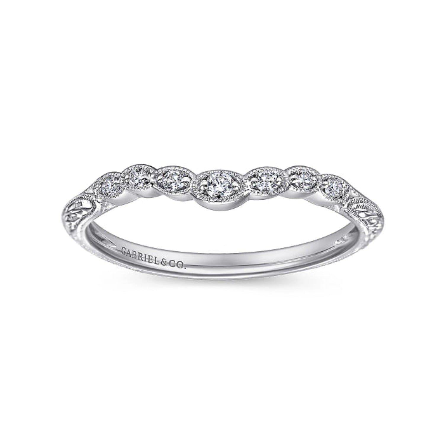HOME / Gabriel & Co. "Chelsea" Curved Engraved Diamond Wedding Band