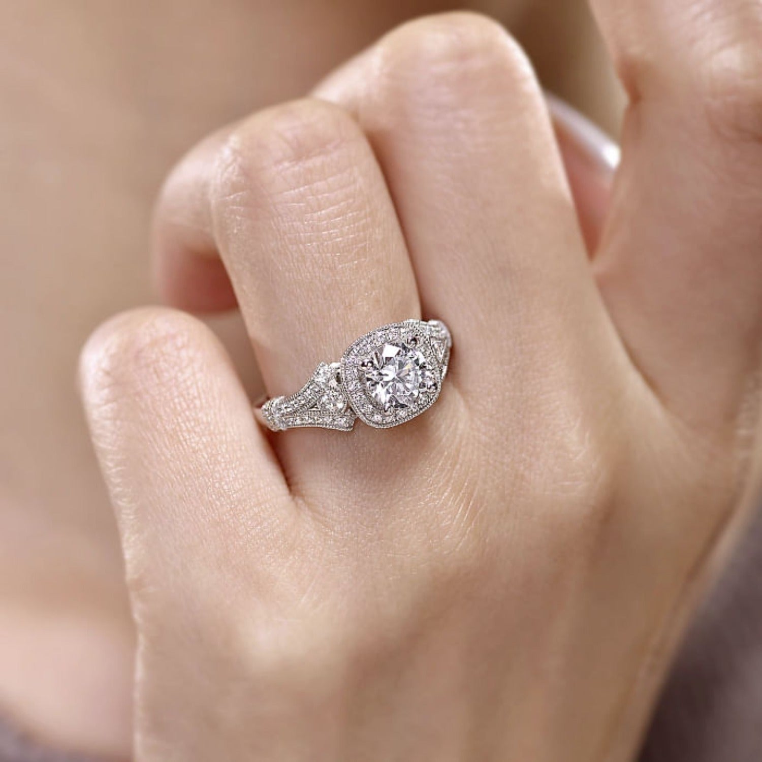 HOME / Gabriel & Co. "Delilah" Vintage Style Diamond Halo Engagement Ring