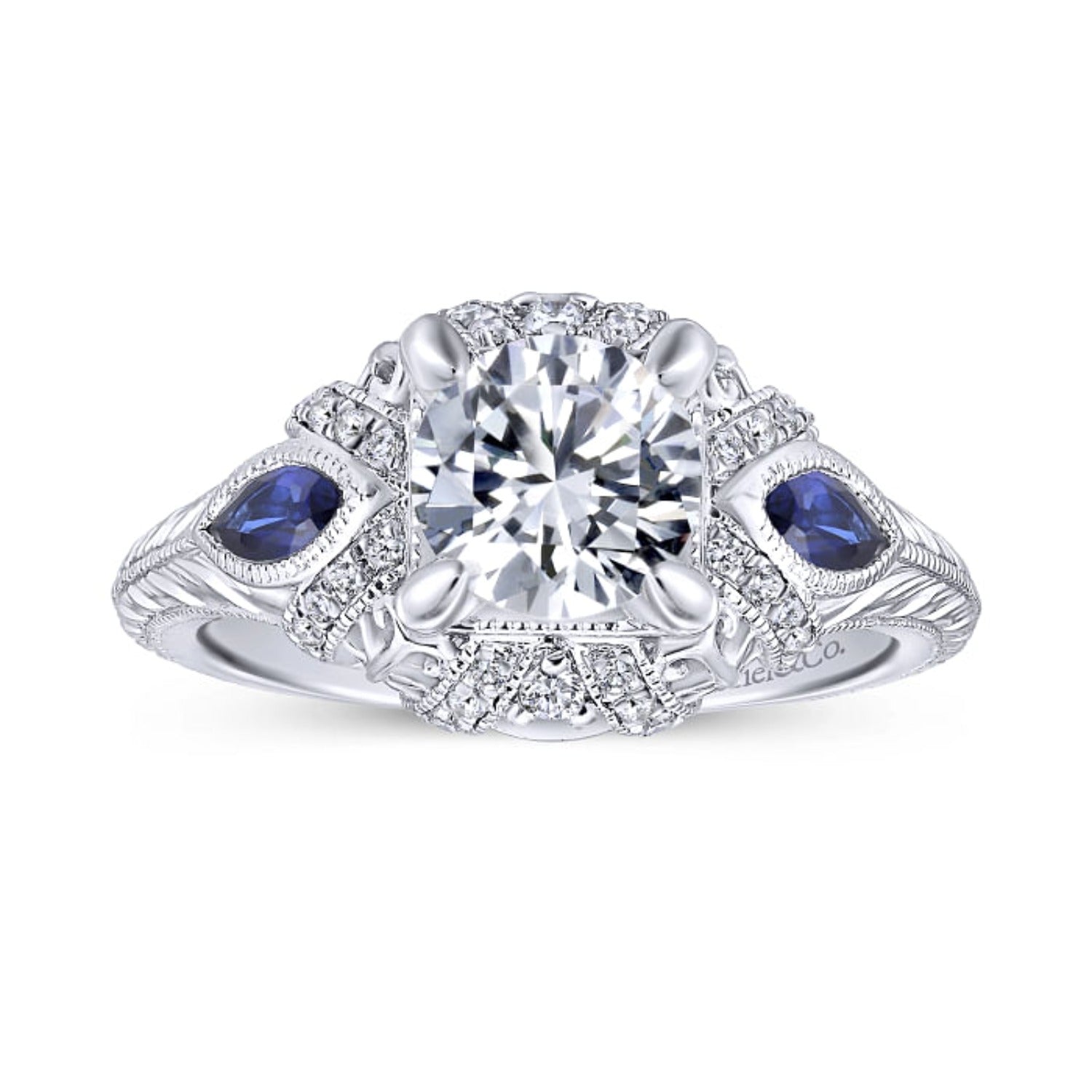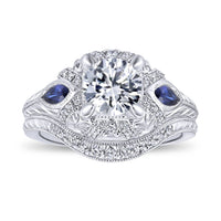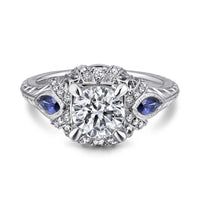 Gabriel & Co. "Lexington" Diamond & Blue Sapphire Halo Engagement Ring